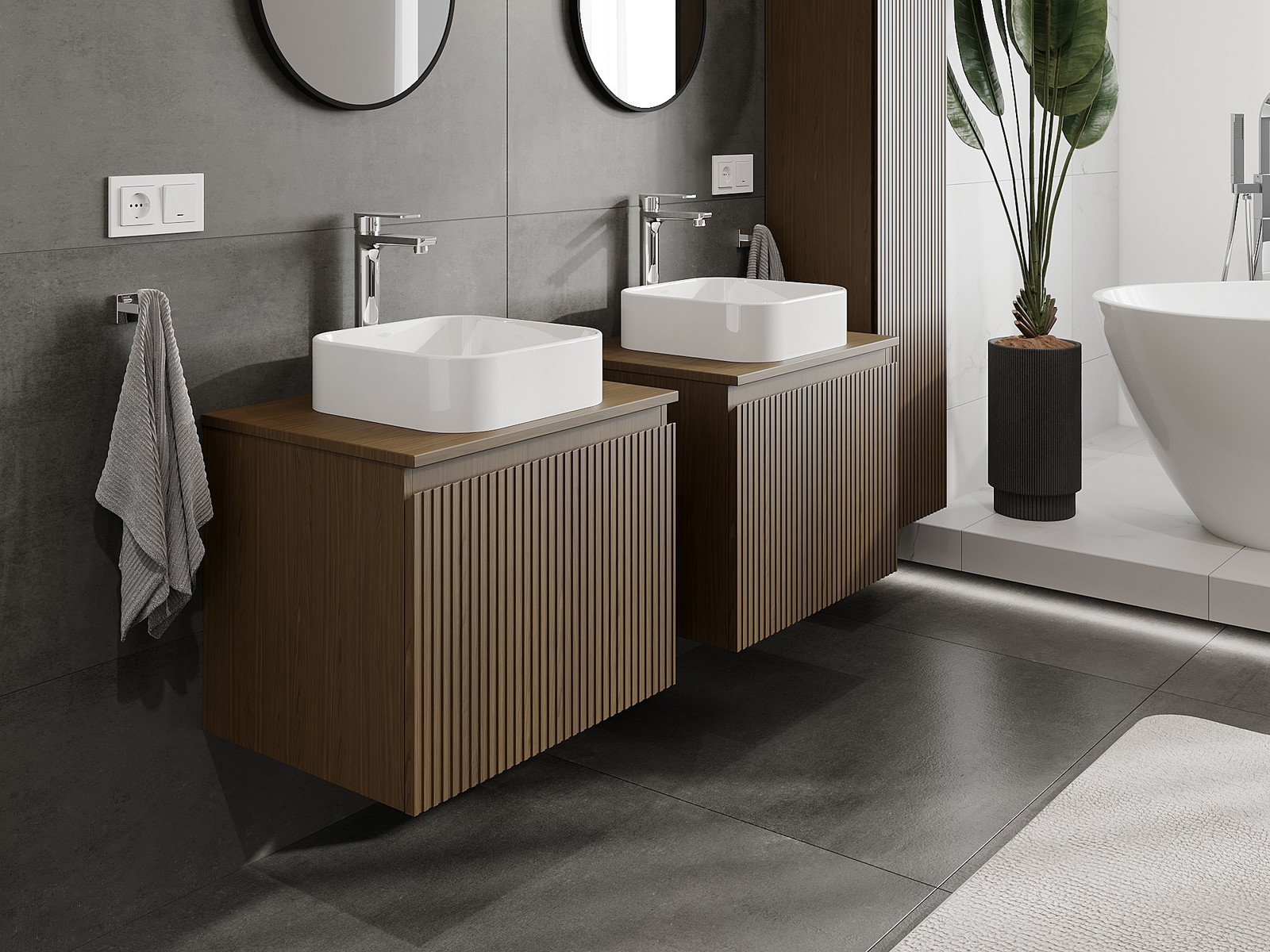 Mexen Rivel vannas istabas izlietnes skapītis 60 cm ar virsmu, 1 atvilktne, rievots, rieksts - 91A20-06047-1-BFC86