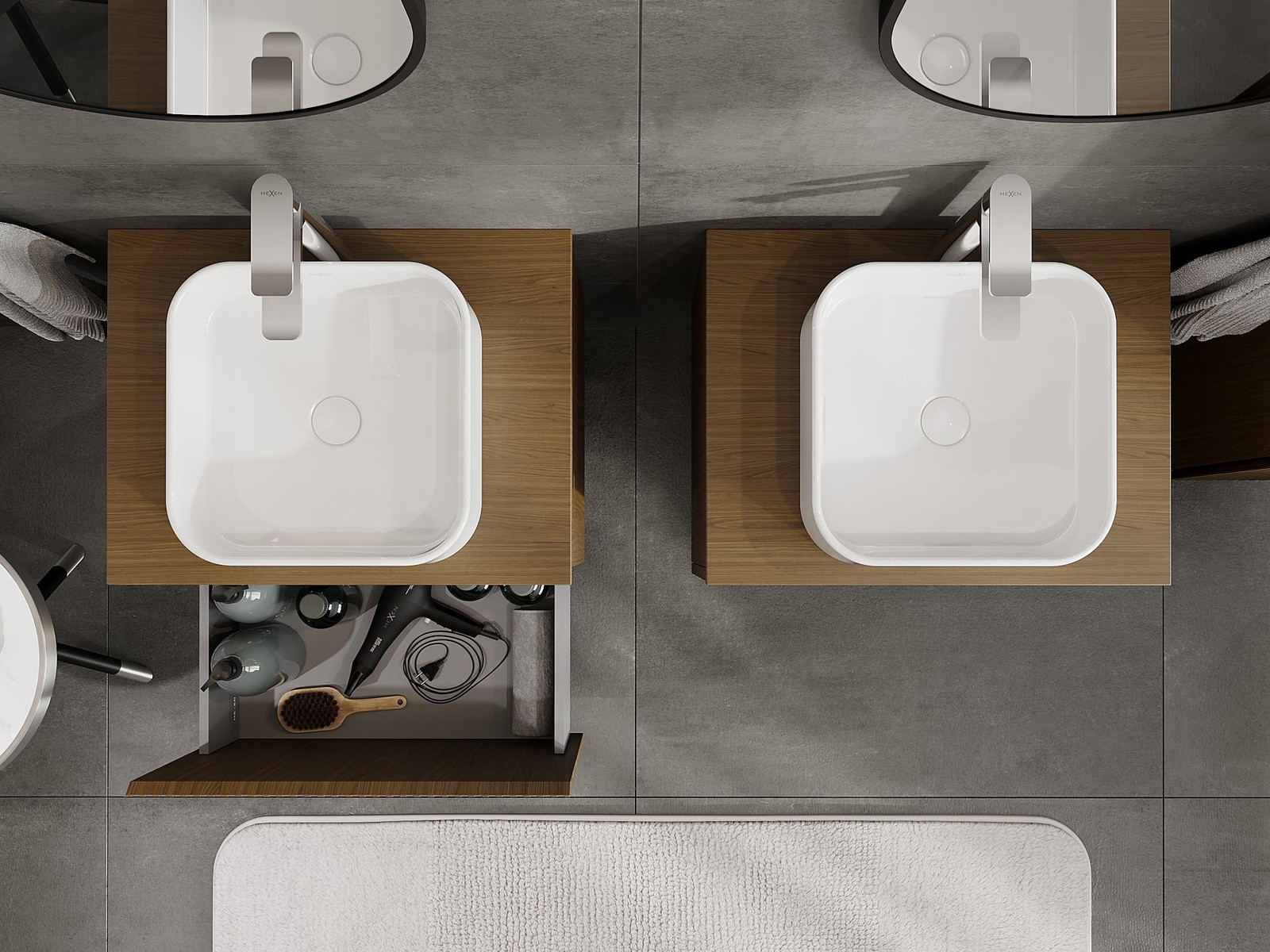 Mūsu modulārās vannas istabas mēbeles var savstarpēji kombinēt dažādās krāsu konfigurācijās, ļaujot pilnīgu personalizāciju. Var izvēlēties gan izskatu, gan atsevišķu elementu funkcijas, kas ļauj pielāgot mēbeles savām stilistiskajām un lietotāju vēlmēm.