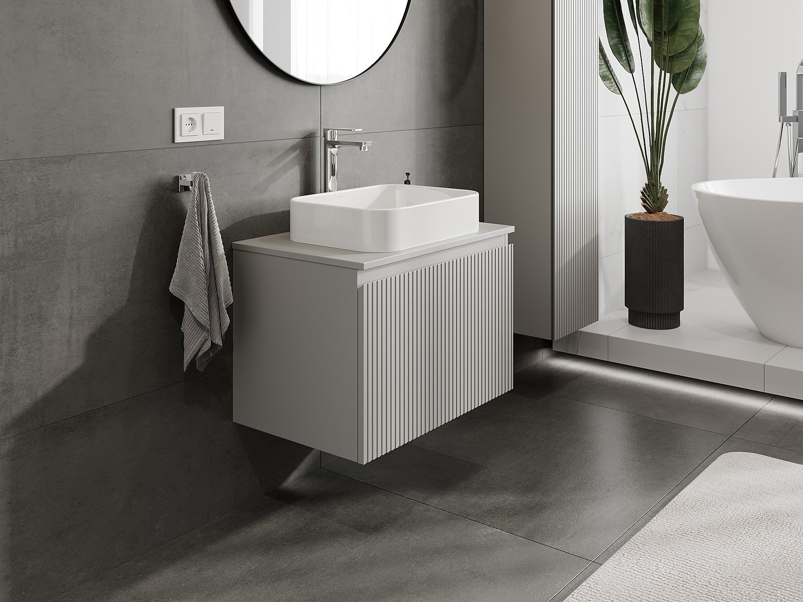 Mexen Rivel vannas istabas skapītis zem izlietnes 70 cm ar galdu, 1 atvilktne, rievots, pelēks mats - 91A20-07047-1-BFC62