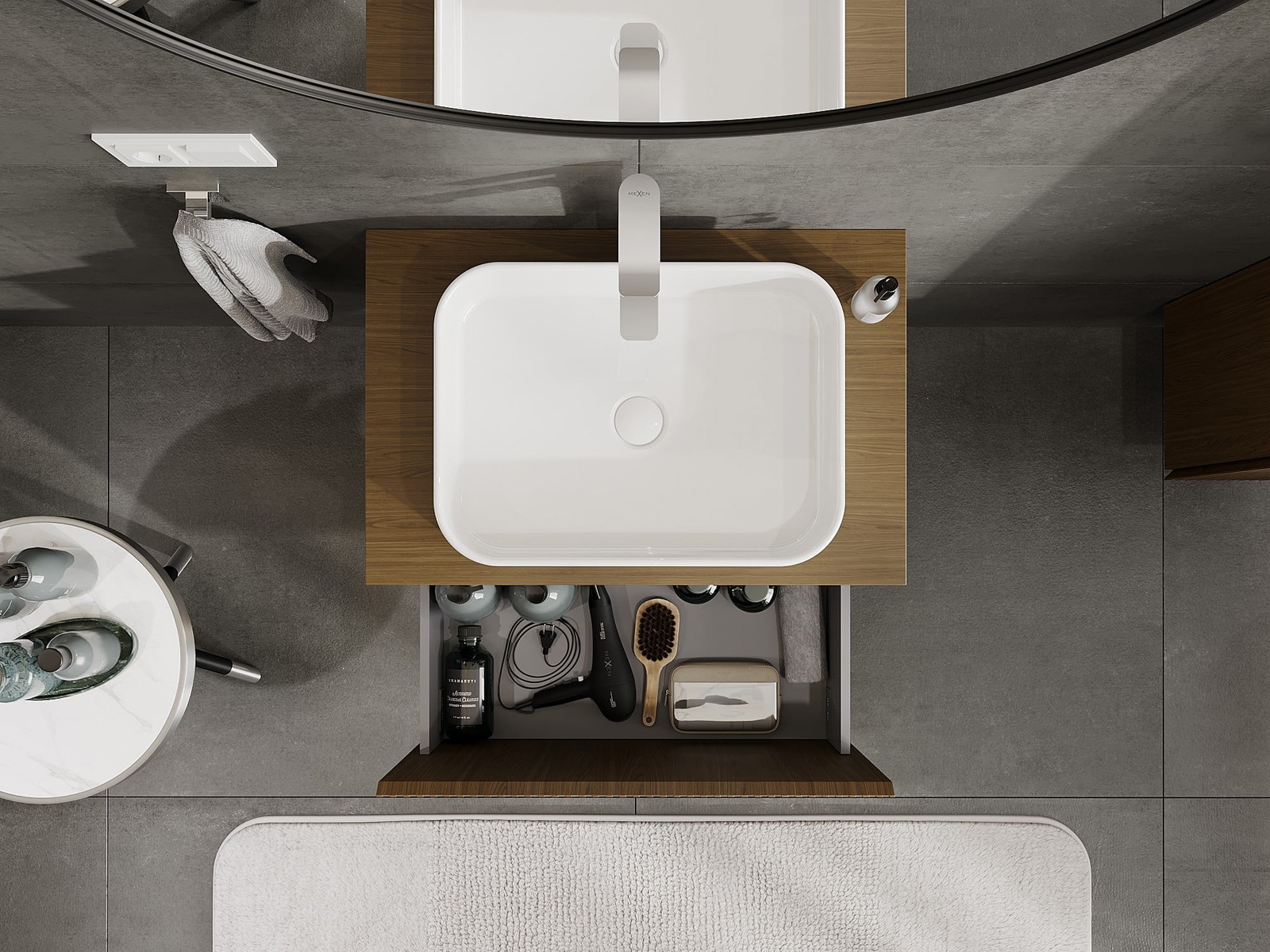Mexen Rivel vannas istabas skapītis zem izlietnes 70 cm ar galdu, 1 atvilktne, rievots, rieksts - 91A20-07047-1-BFC86
