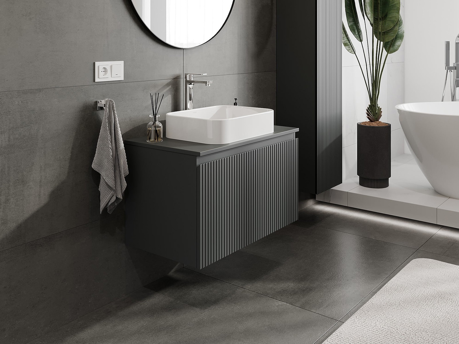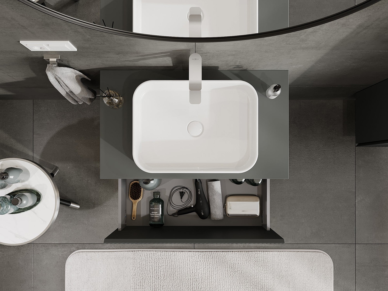 Mexen Rivel vannas istabas skapītis zem izlietnes ar virsmu, 80 cm, 1 atvilktne, rievots, grafīts matēts - 91A20-08047-1-BFC66