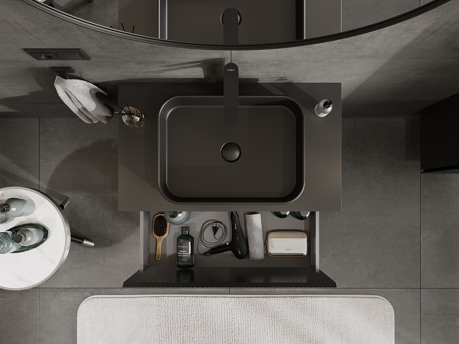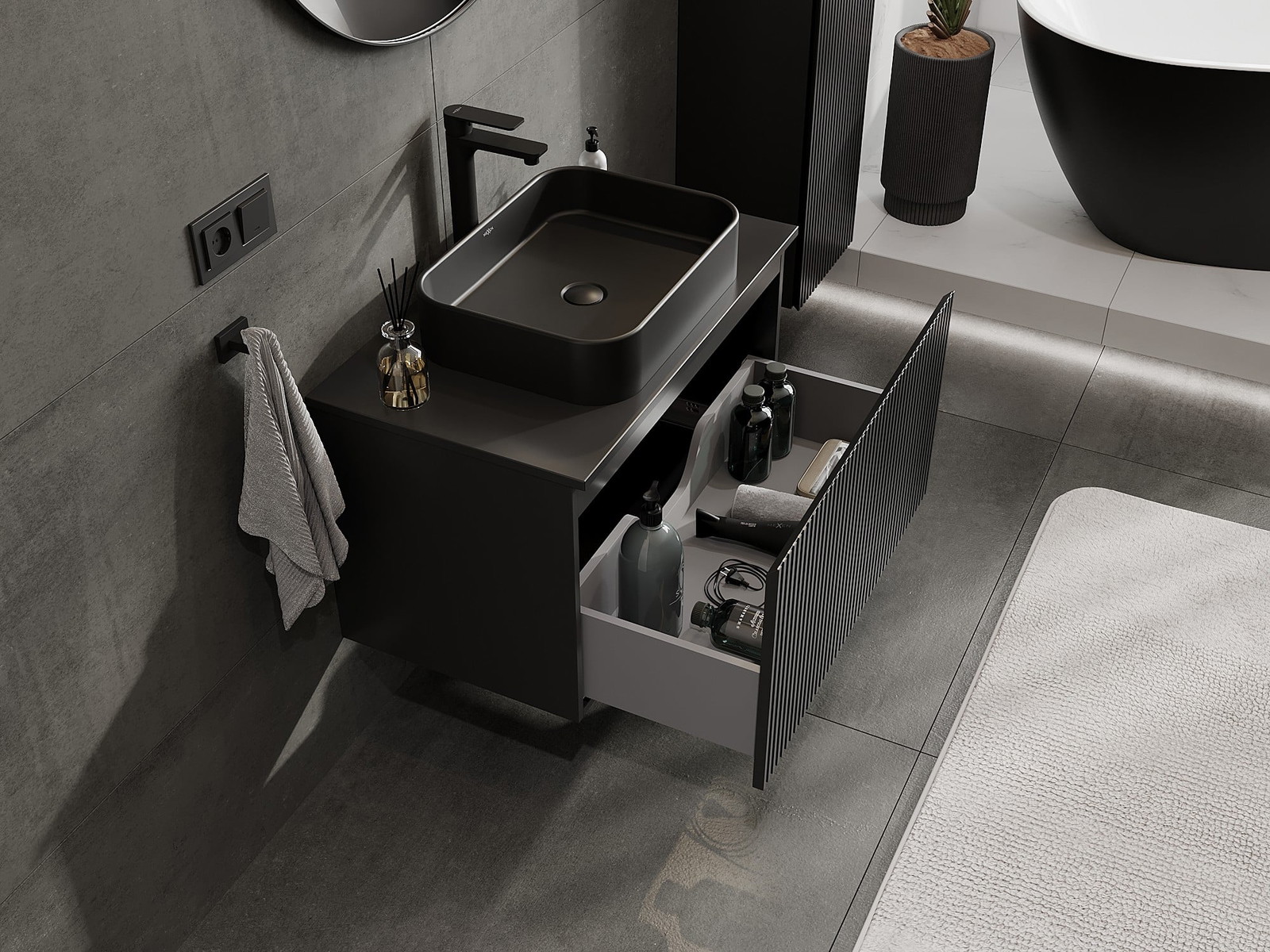 Mexen Rivel Vannas istabas izlietnes skapītis, 80 cm ar galda virsmu, 1 atvilktne, rievota, melns matēts - 91A20-08047-1-BFC71