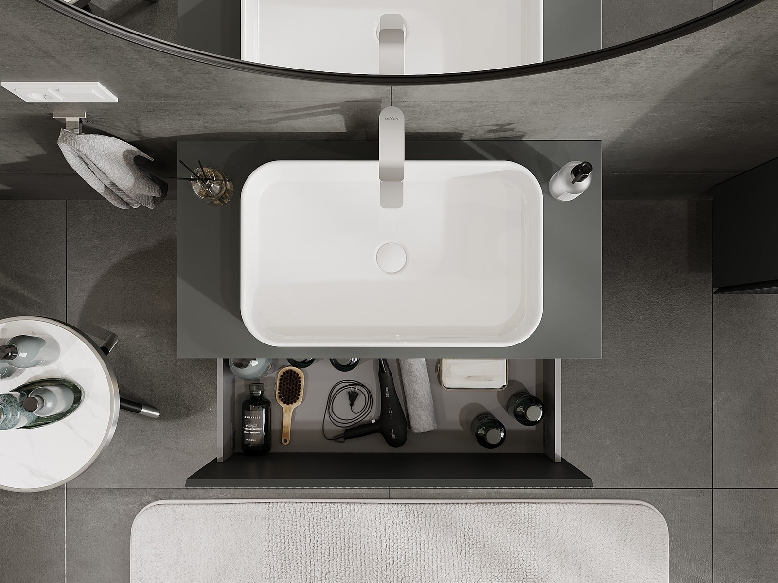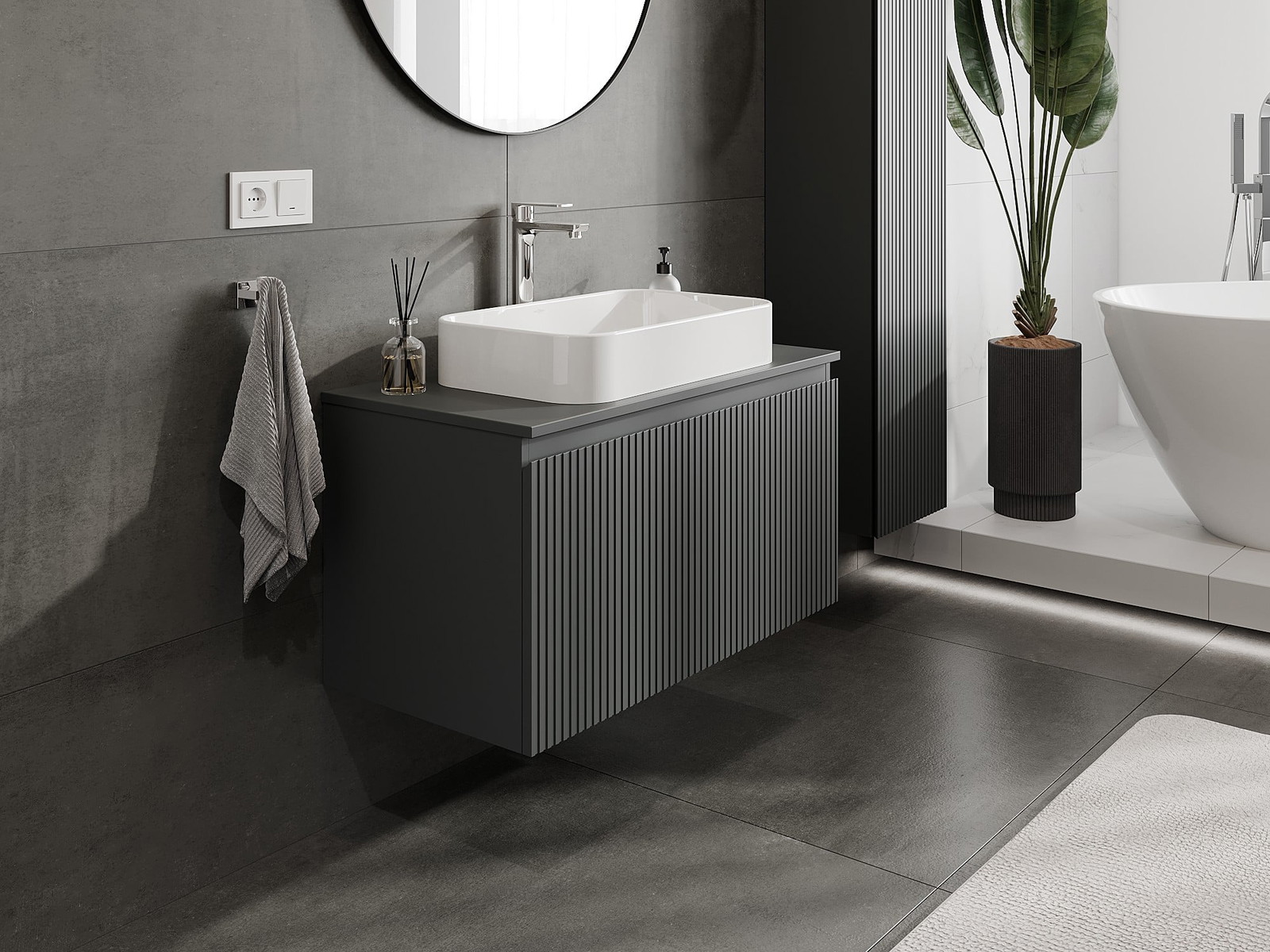 Mexen Rivel vannas istabas izlietnes skapītis 90 cm ar virsmu, 1 atvilktne, rievots, grafīts mats - 91A20-09047-1-BFC66