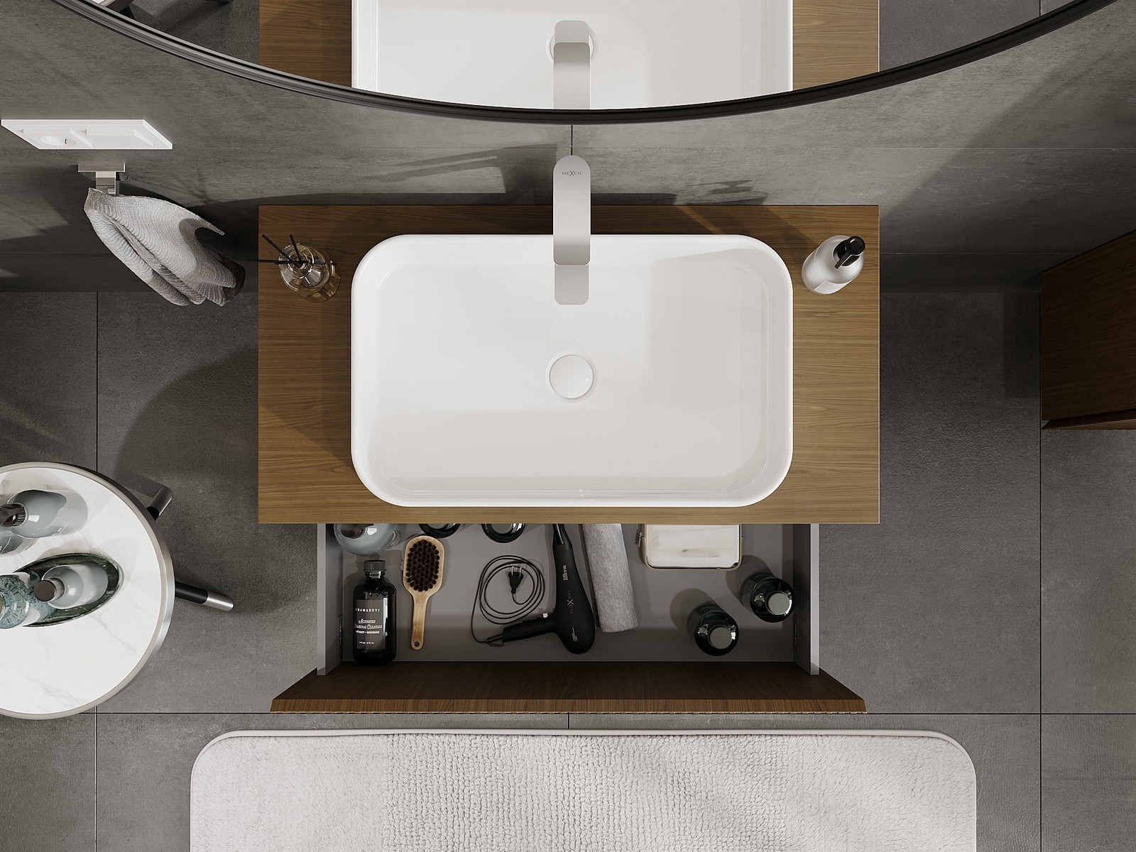 Mexen Rivel vannas istabas skapītis zem izlietnes, 90 cm ar galda virsmu, 1 atvilktne, rievots, valrieksts - 91A20-09047-1-BFC86