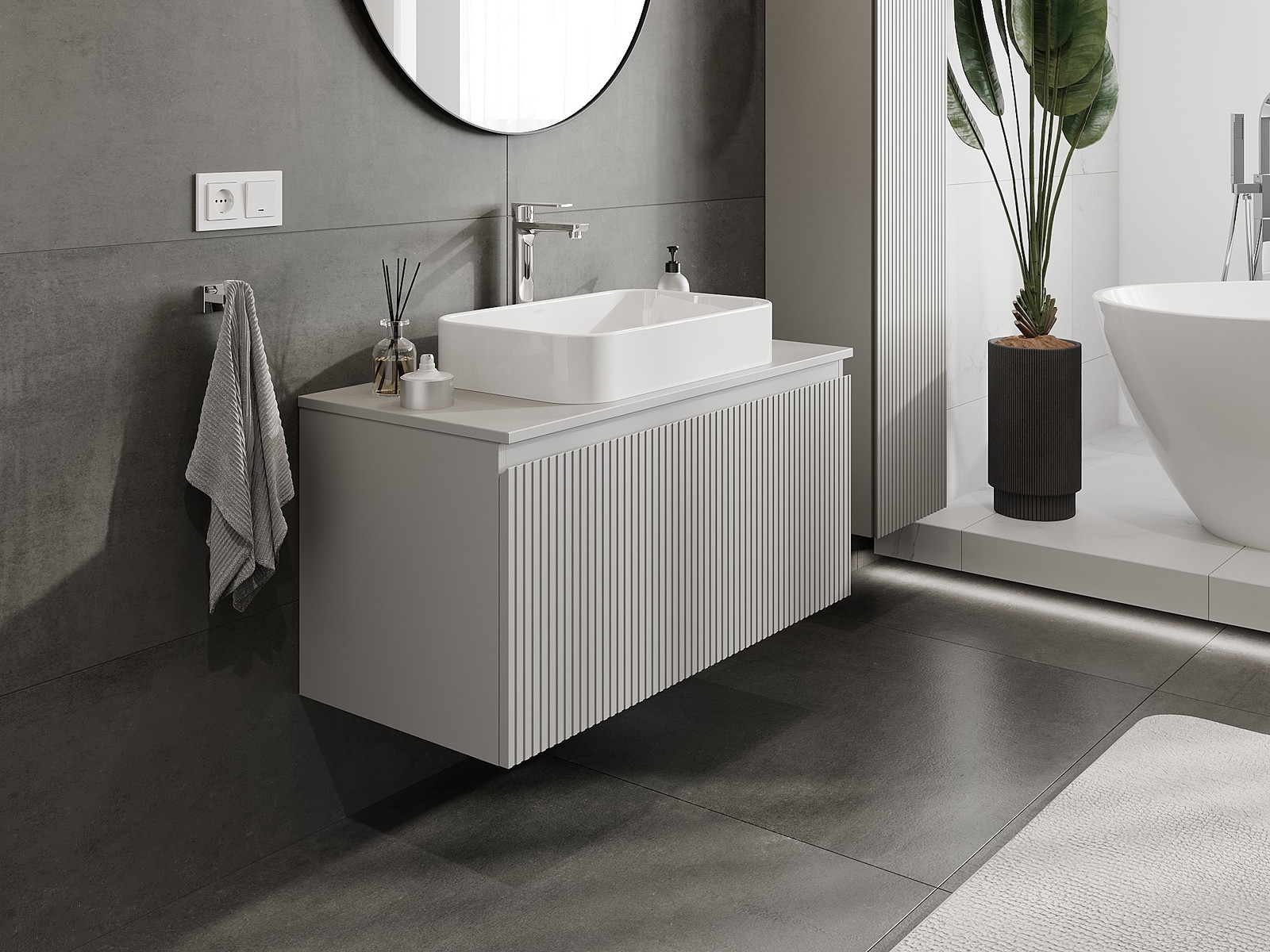 Mexen Rivel vannas istabas skapītis zem izlietnes 100 cm ar virsmu, 1 atvilktne, rievots, pelēks mats - 91A20-10047-1-BFC62