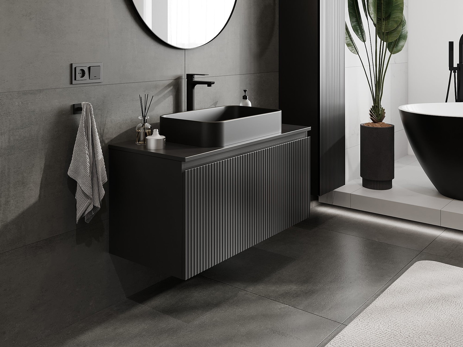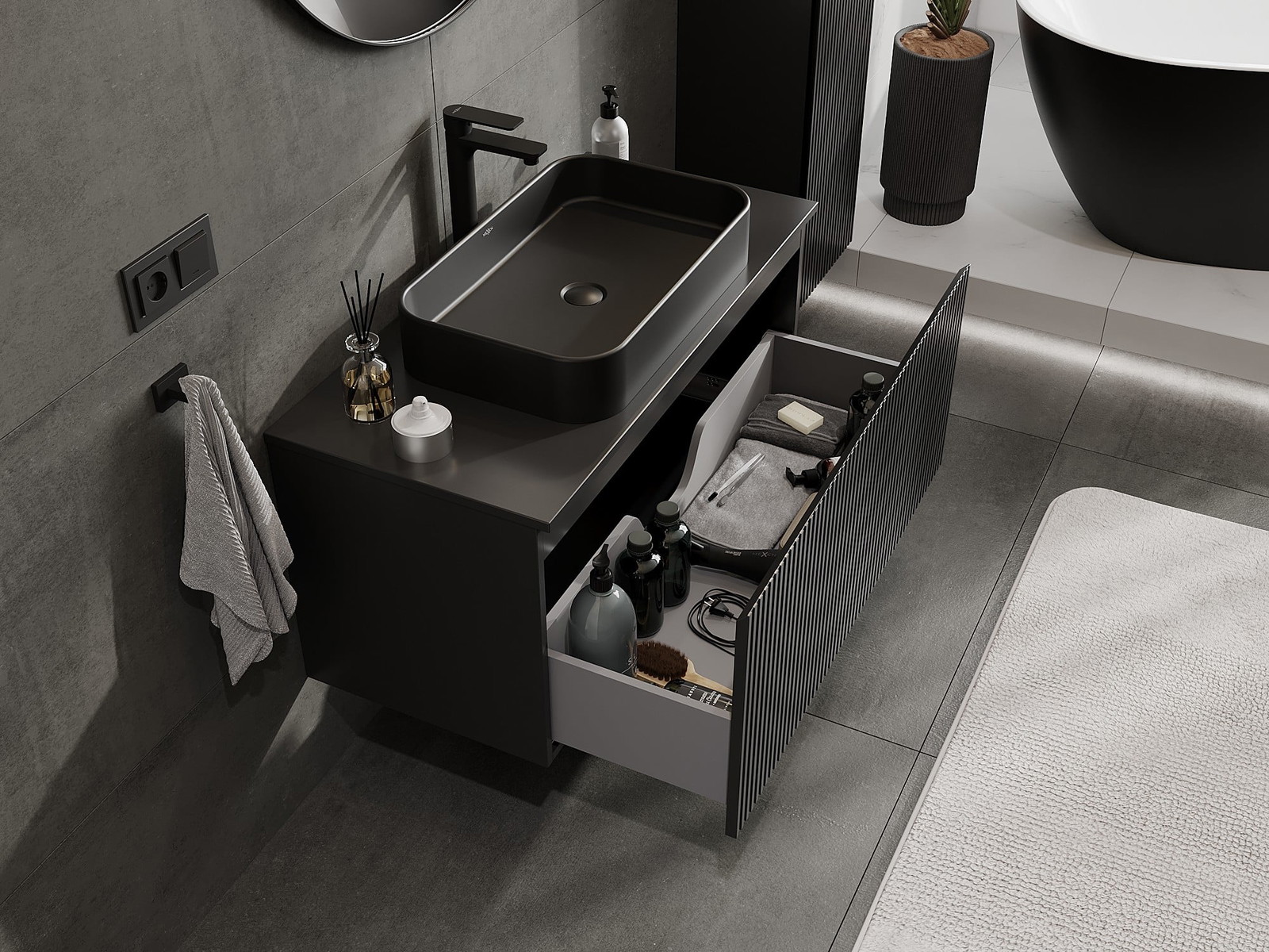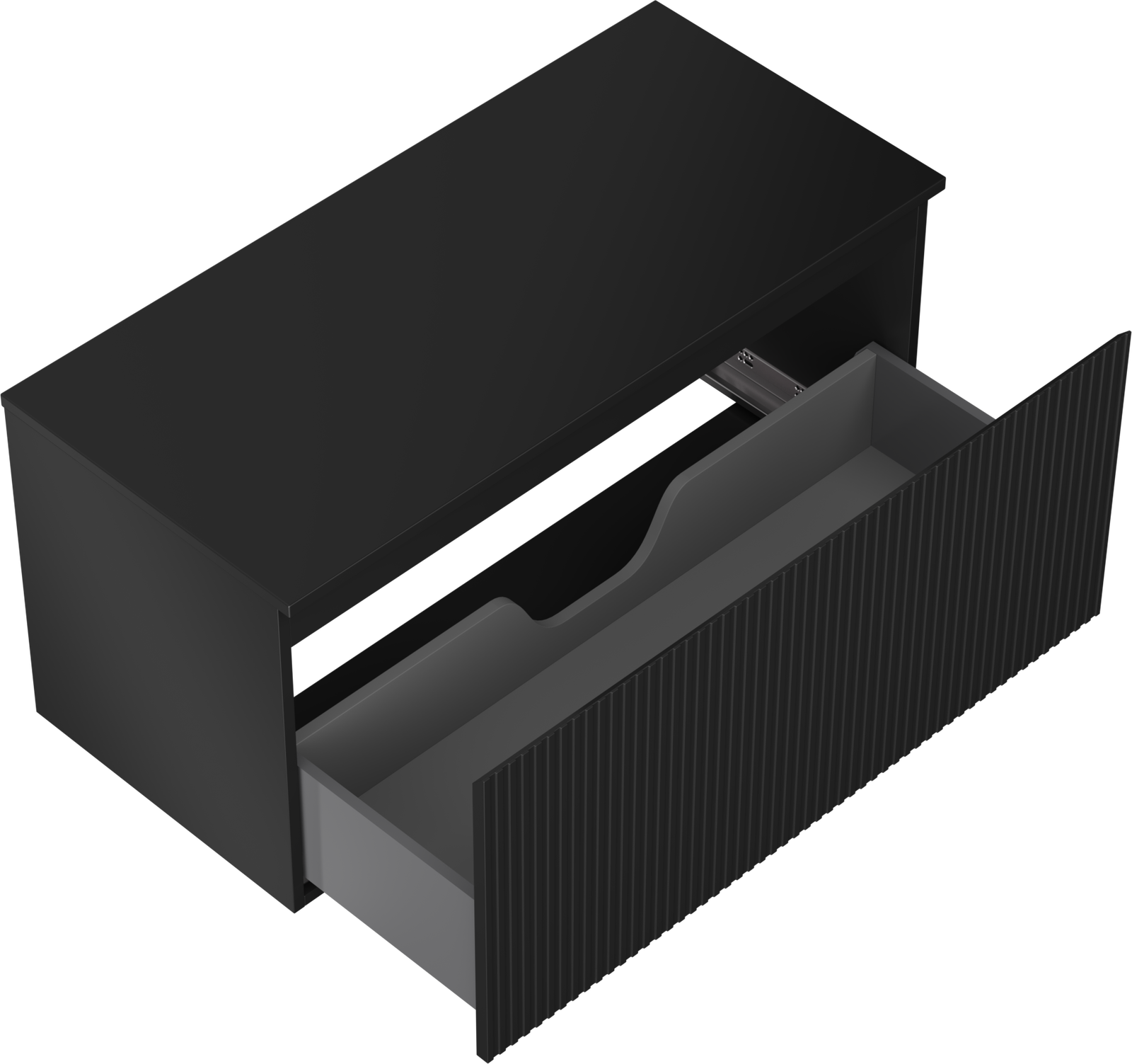 Mexen Rivel vannas istabas skapītis zem izlietnes 100 cm ar virsmu, 1 atvilktne, rievots, melns mats - 91A20-10047-1-BFC71