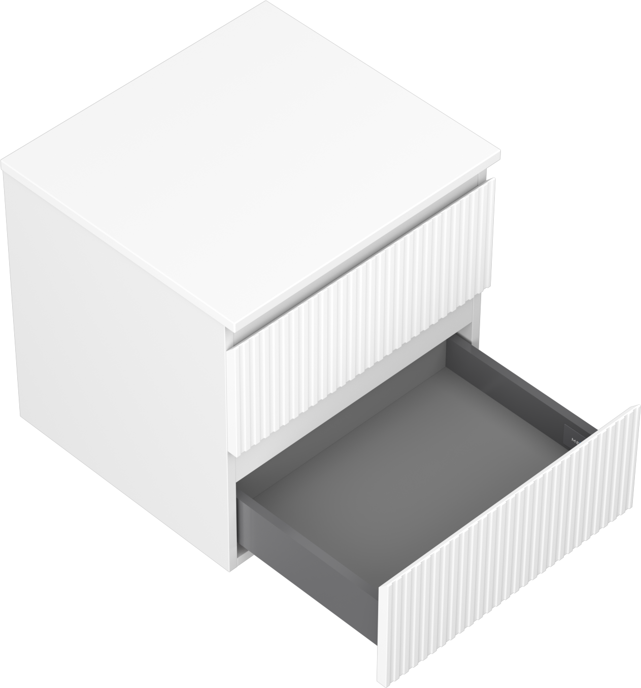 Mexen Rivel vannasistabas skapītis zem izlietnes 50 cm ar virsmu, 2 atvilktnes, rievots, balts mats - 91A20-05047-2-BFFC01