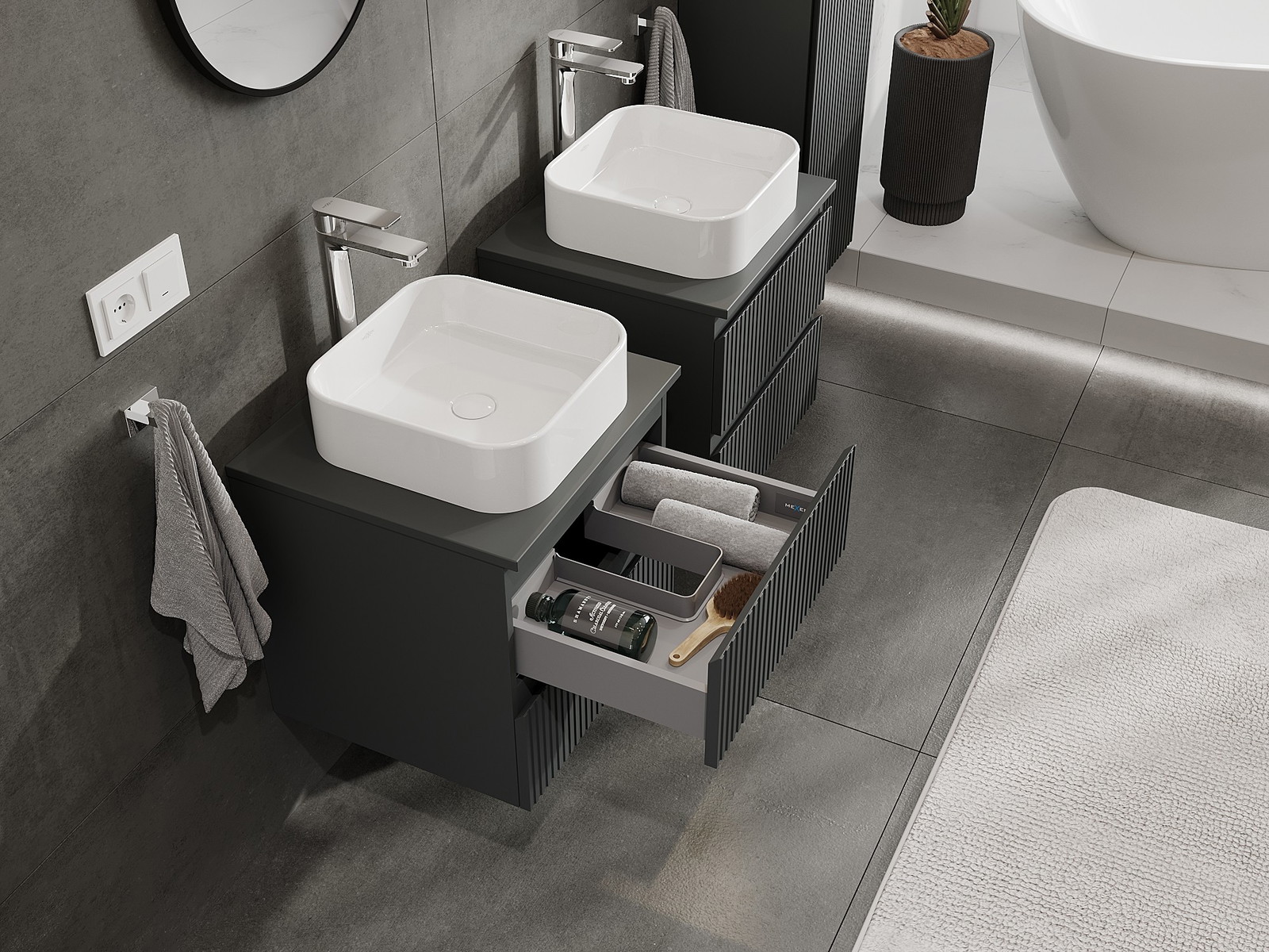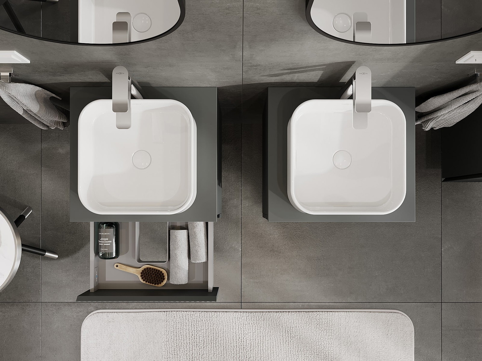 Mexen Rivel vannas istabas skapītis zem izlietnes 50 cm ar virsmu, 2 atvilktnes, grebts, grafīts matēts - 91A20-05047-2-BFFC66
