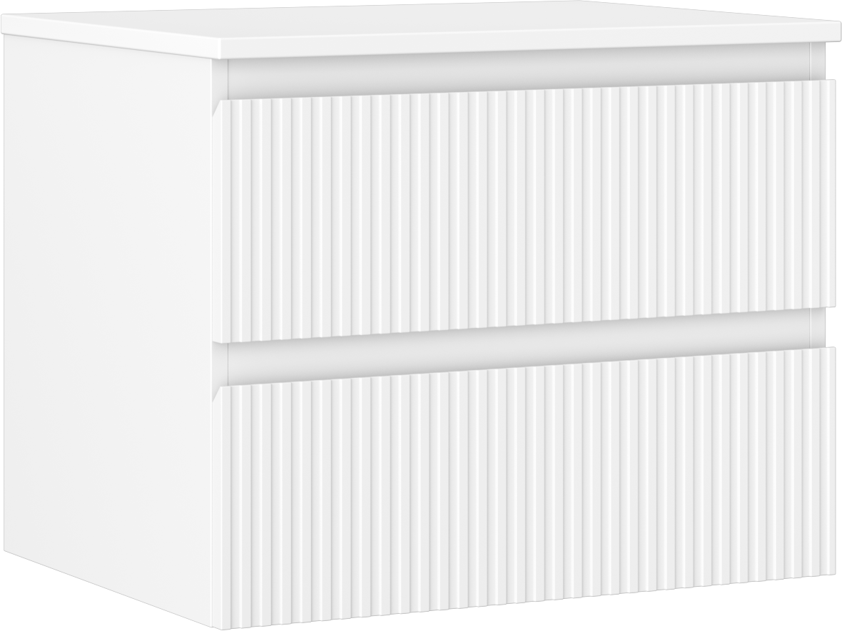 Mexen Rivel vannas istabas skapis zem izlietnes 60 cm ar virsmu, 2 atvilktnes, rievots, balts matēts - 91A20-06047-2-BFFC01