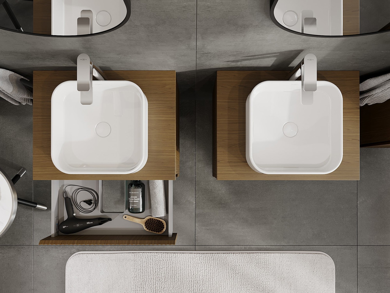 Skapja korpuss tiek piegādāts pilnībā samontēts, kas nozīmē maksimālu ērtību un laika ietaupījumu. Jums nav jātērē stundas mēbeļu salikšanai – pietiek to uzstādīt izvēlētajā vietā vannas istabā. Tas ir ideāls risinājums cilvēkiem, kuri novērtē ātru montāžu un tūlītēju efektu.