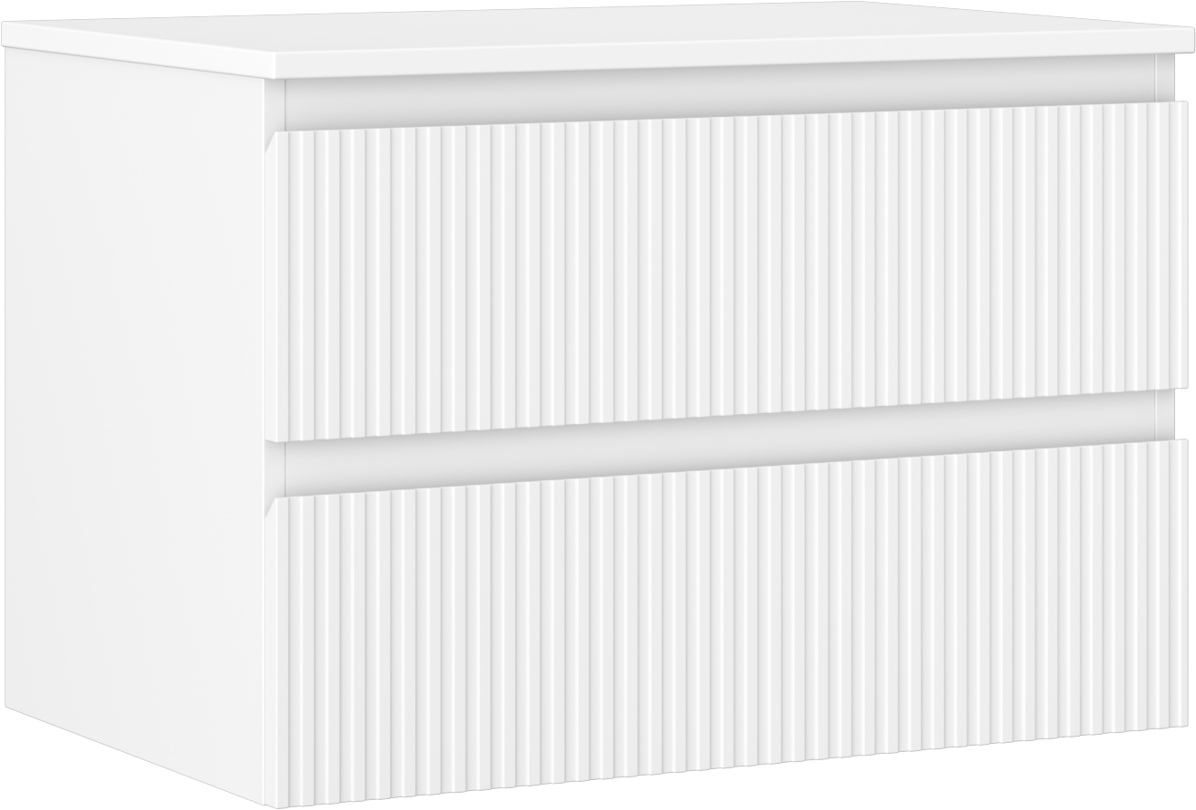 Mexen Rivel 70 cm vannas istabas skapītis zem izlietnes ar virsmu, 2 atvilktnes, rievots, baltā matēta - 91A20-07047-2-BFFC01