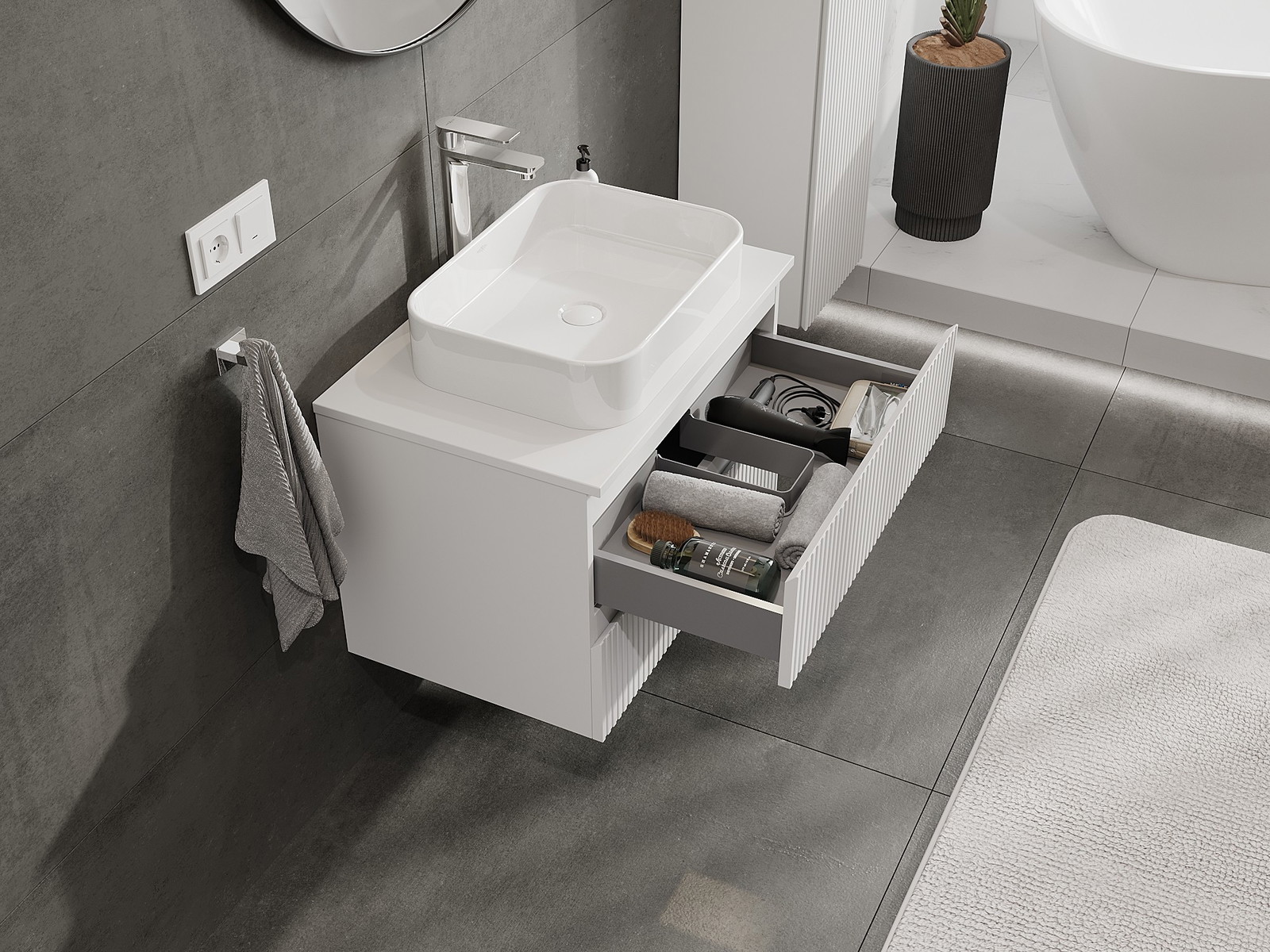 Izgriezums atvilktnē ir veidots tā, lai tajā varētu ietilpt sifons, kas ir nepieciešams izlietņu uzstādīšanā. Pateicoties tam, mēbele var tikt pilnībā funkcionāli uzstādīta, neatstājot ievērojamu vietu atvilktnē instalācijai.