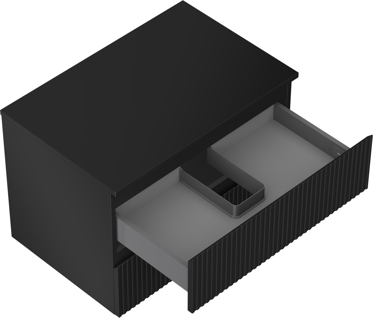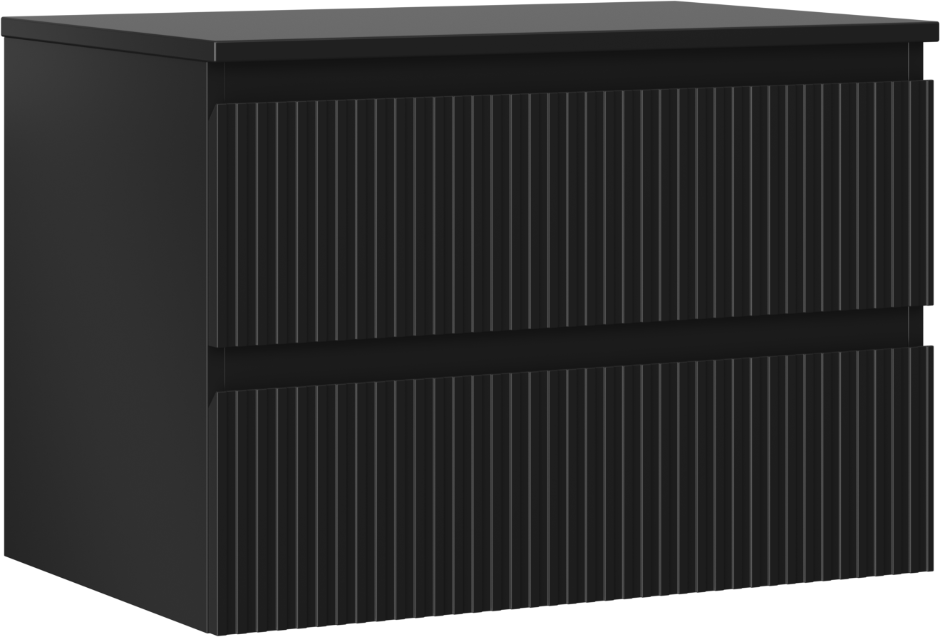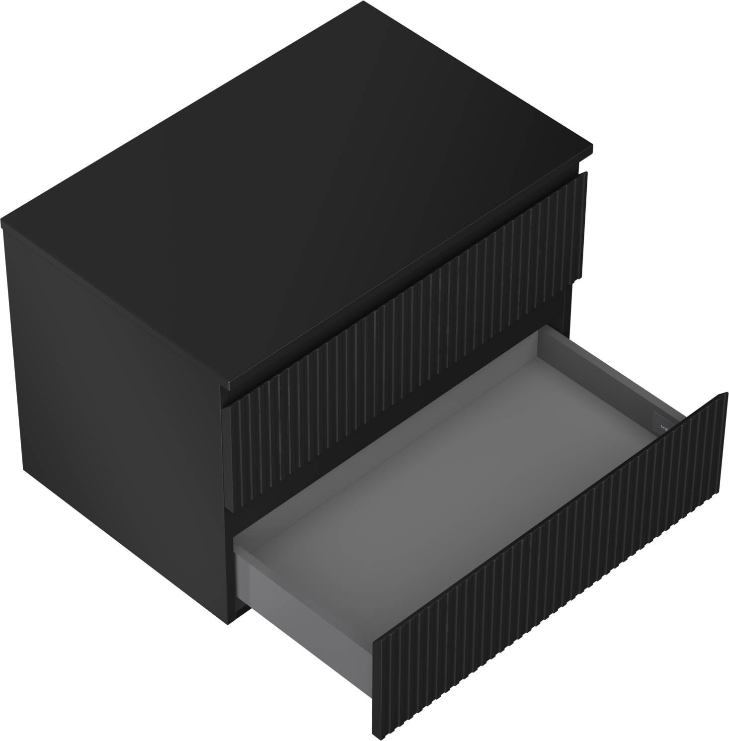 Mexen Rivel vannas istabas skapītis zem izlietnes 70 cm ar galdu, 2 atvilktnes, rievots, melns mats - 91A20-07047-2-BFFC71