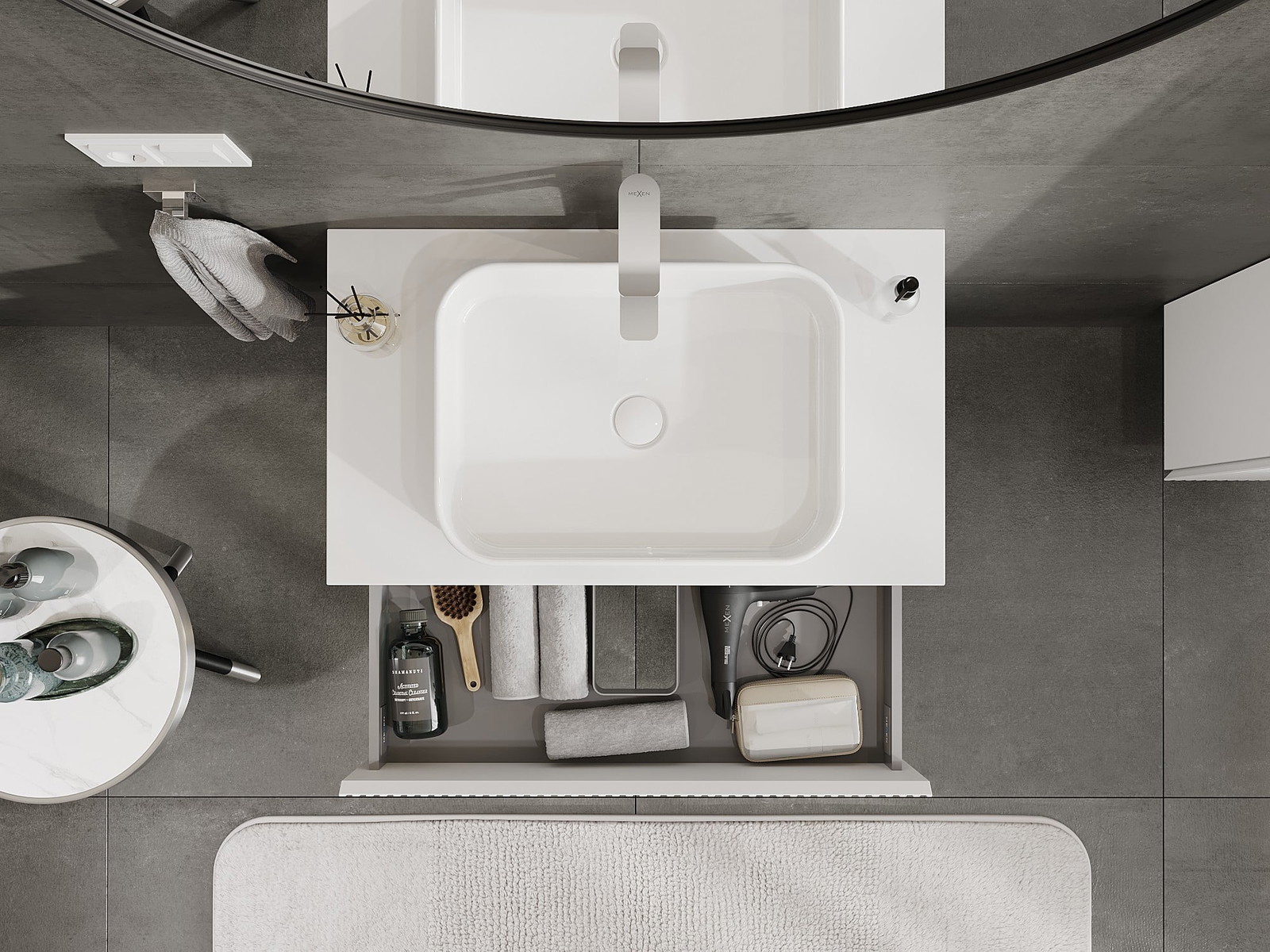Mūsu modulārās vannas istabas mēbeles var savstarpēji kombinēt dažādās krāsu konfigurācijās, ļaujot pilnīgu personalizāciju. Var izvēlēties gan izskatu, gan atsevišķu elementu funkcijas, kas ļauj pielāgot mēbeles savām stilistiskajām un lietotāju vēlmēm.