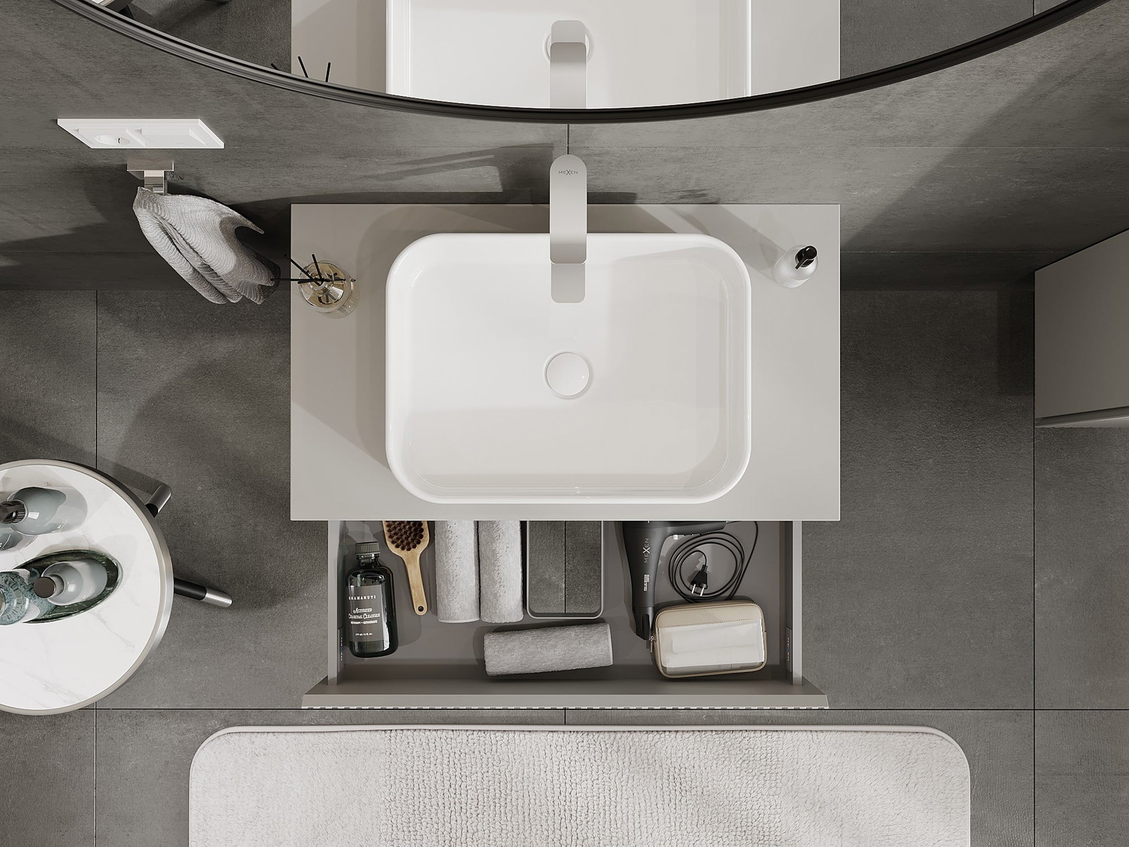 Mūsu modulārās vannas istabas mēbeles var savstarpēji kombinēt dažādās krāsu konfigurācijās, ļaujot pilnīgu personalizāciju. Var izvēlēties gan izskatu, gan atsevišķu elementu funkcijas, kas ļauj pielāgot mēbeles savām stilistiskajām un lietotāju vēlmēm.