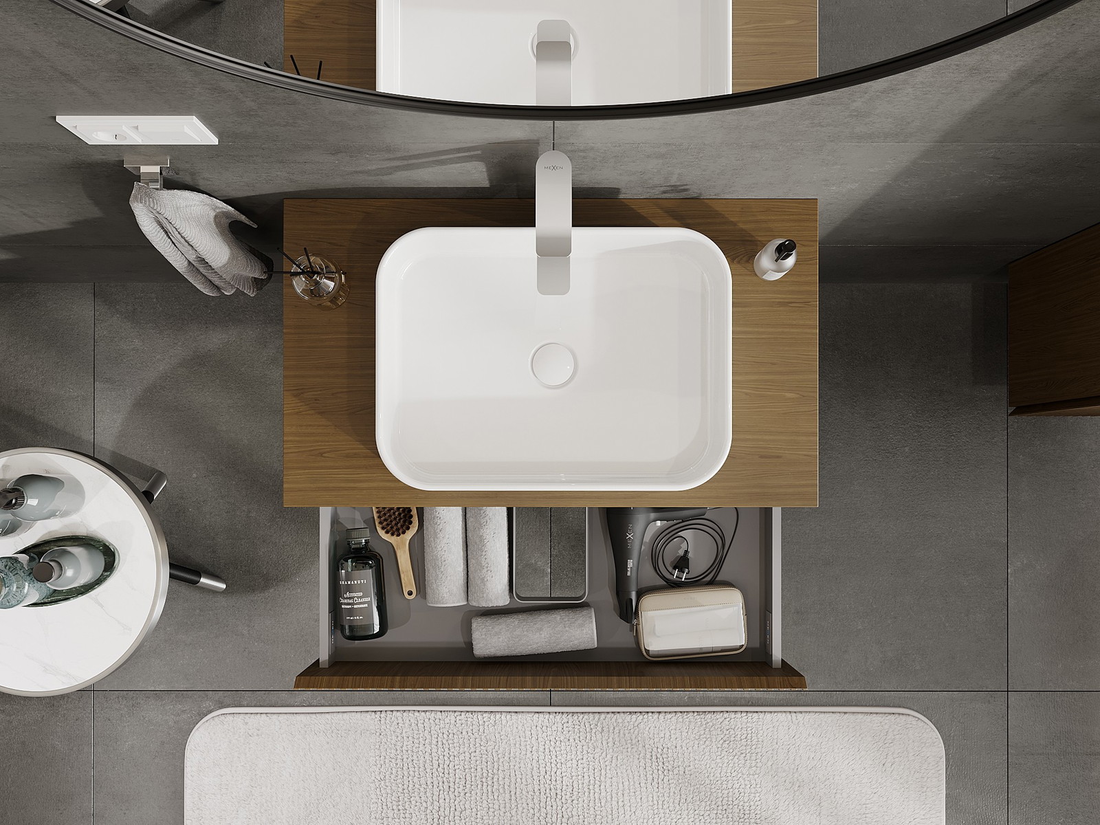 Mūsu modulārās vannas istabas mēbeles var savstarpēji kombinēt dažādās krāsu konfigurācijās, ļaujot pilnīgu personalizāciju. Var izvēlēties gan izskatu, gan atsevišķu elementu funkcijas, kas ļauj pielāgot mēbeles savām stilistiskajām un lietotāju vēlmēm.