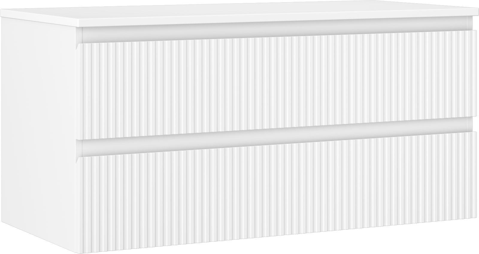 Mexen Rivel vannas istabas skapītis zem izlietnes 100 cm ar virsmu, 2 atvilktnes, rievots, balts matēts - 91A20-10047-2-BFFC01