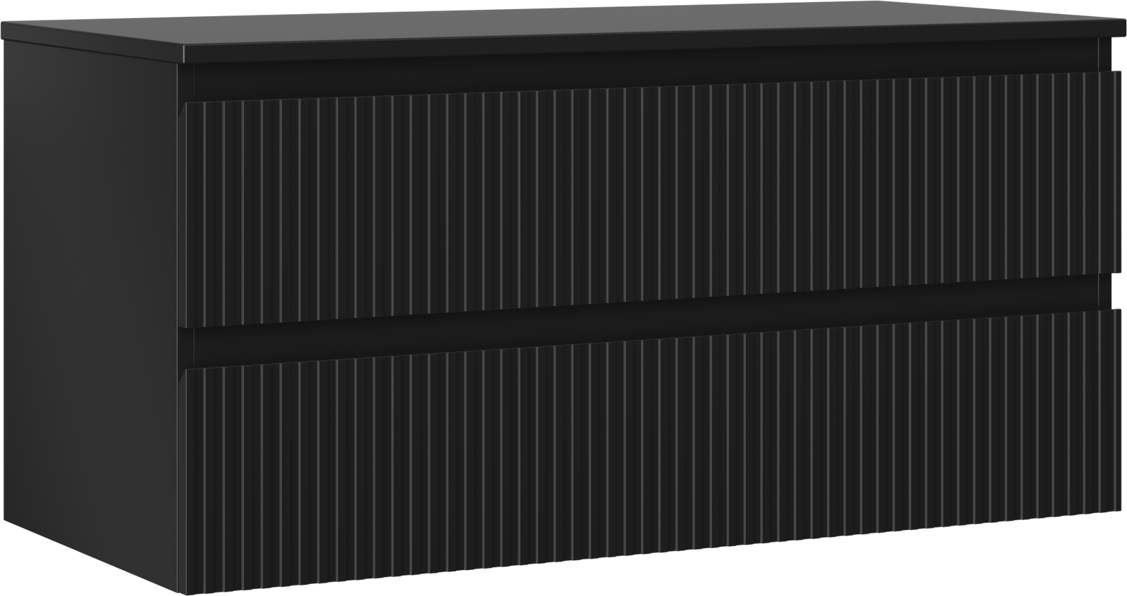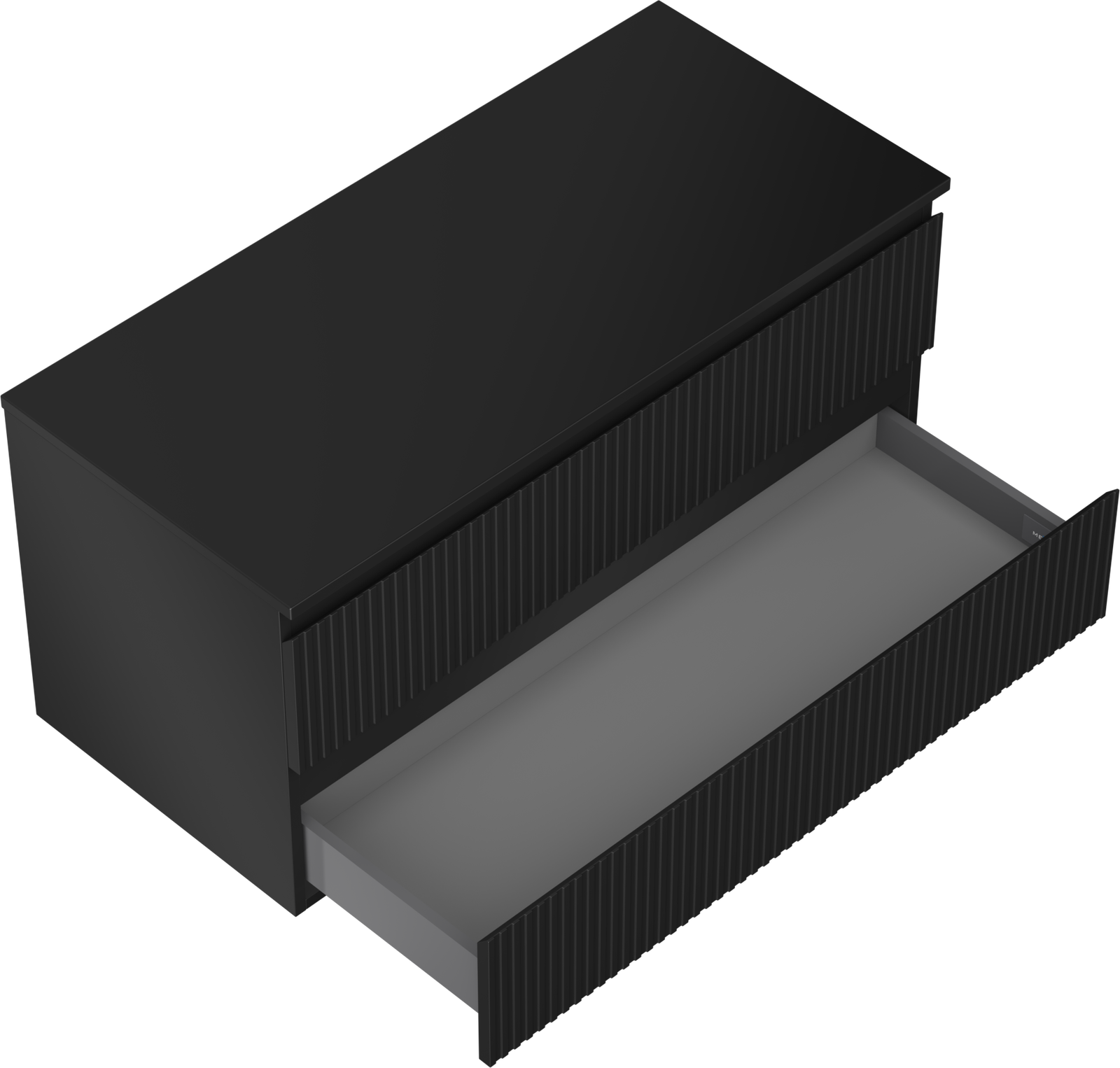 Mexen Rivel vannas istabas izlietnes skapis 100 cm ar galda virsmu, 2 atvilktnes, rievots, melns matēts - 91A20-10047-2-BFFC71