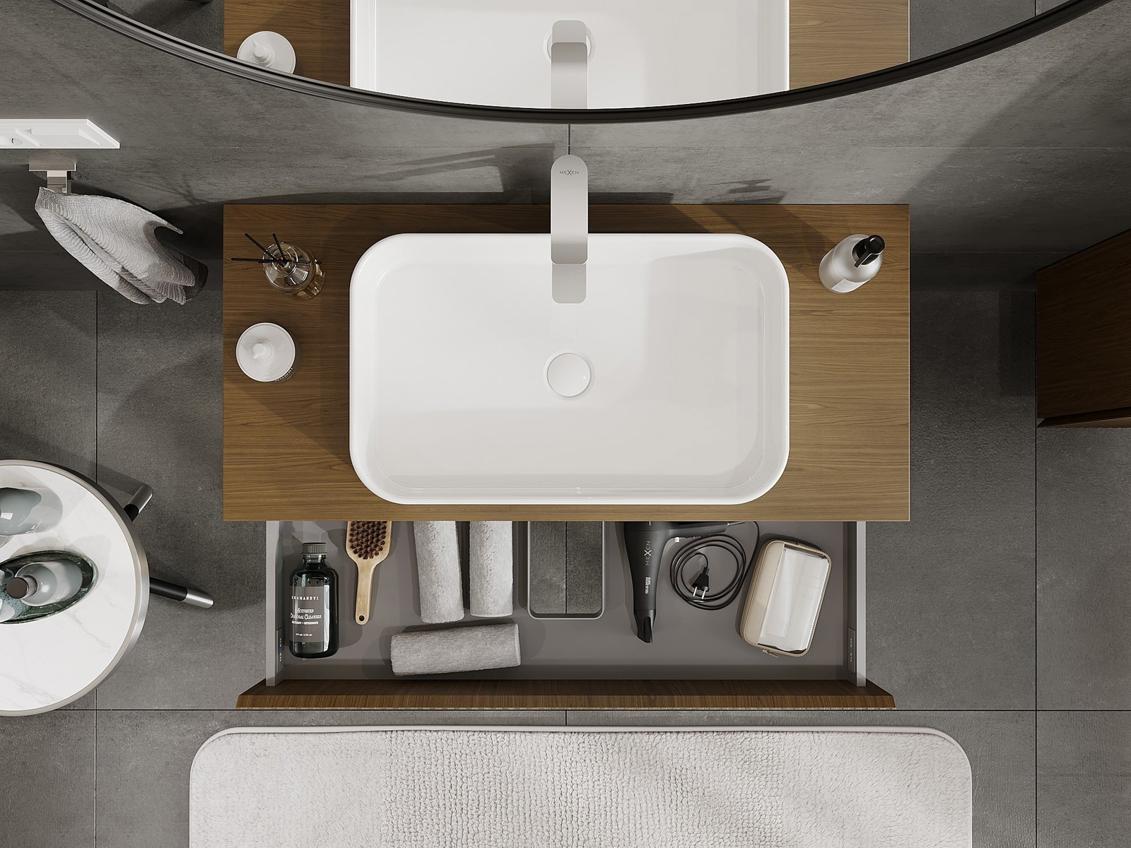 Izgriezums atvilktnē ir veidots tā, lai tajā varētu ietilpt sifons, kas ir nepieciešams izlietņu uzstādīšanā. Pateicoties tam, mēbele var tikt pilnībā funkcionāli uzstādīta, neatstājot ievērojamu vietu atvilktnē instalācijai.