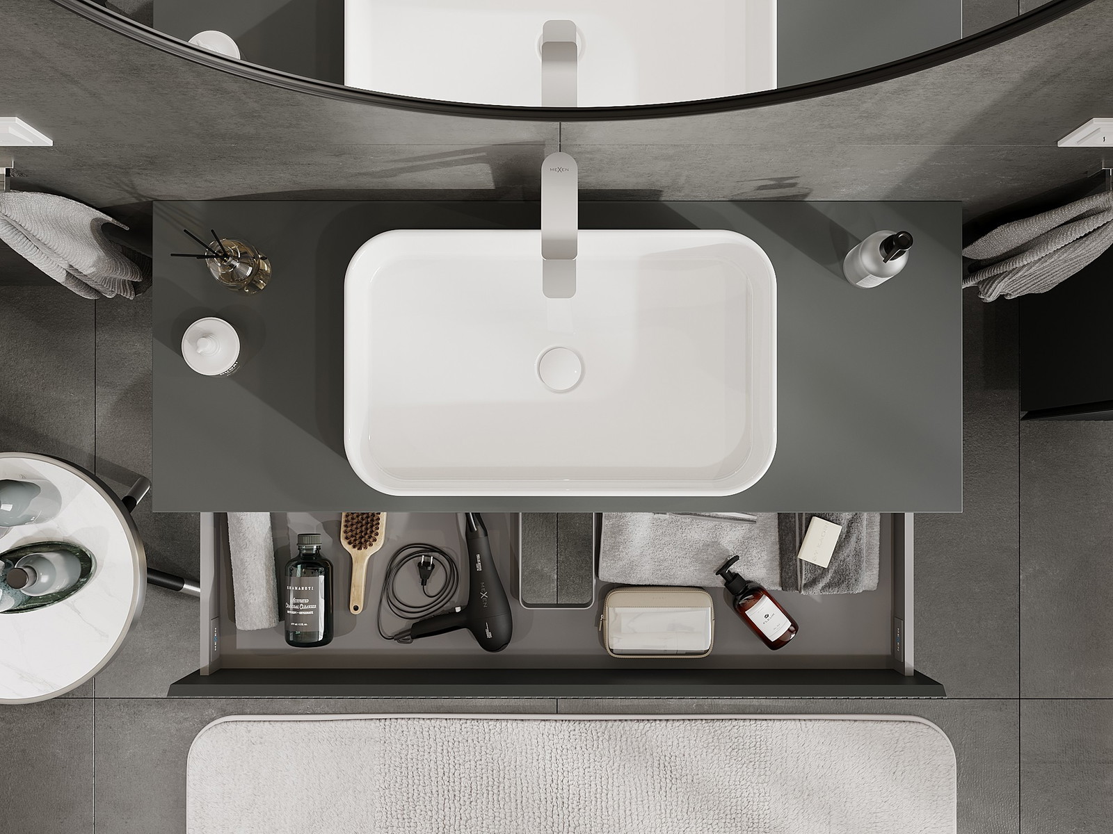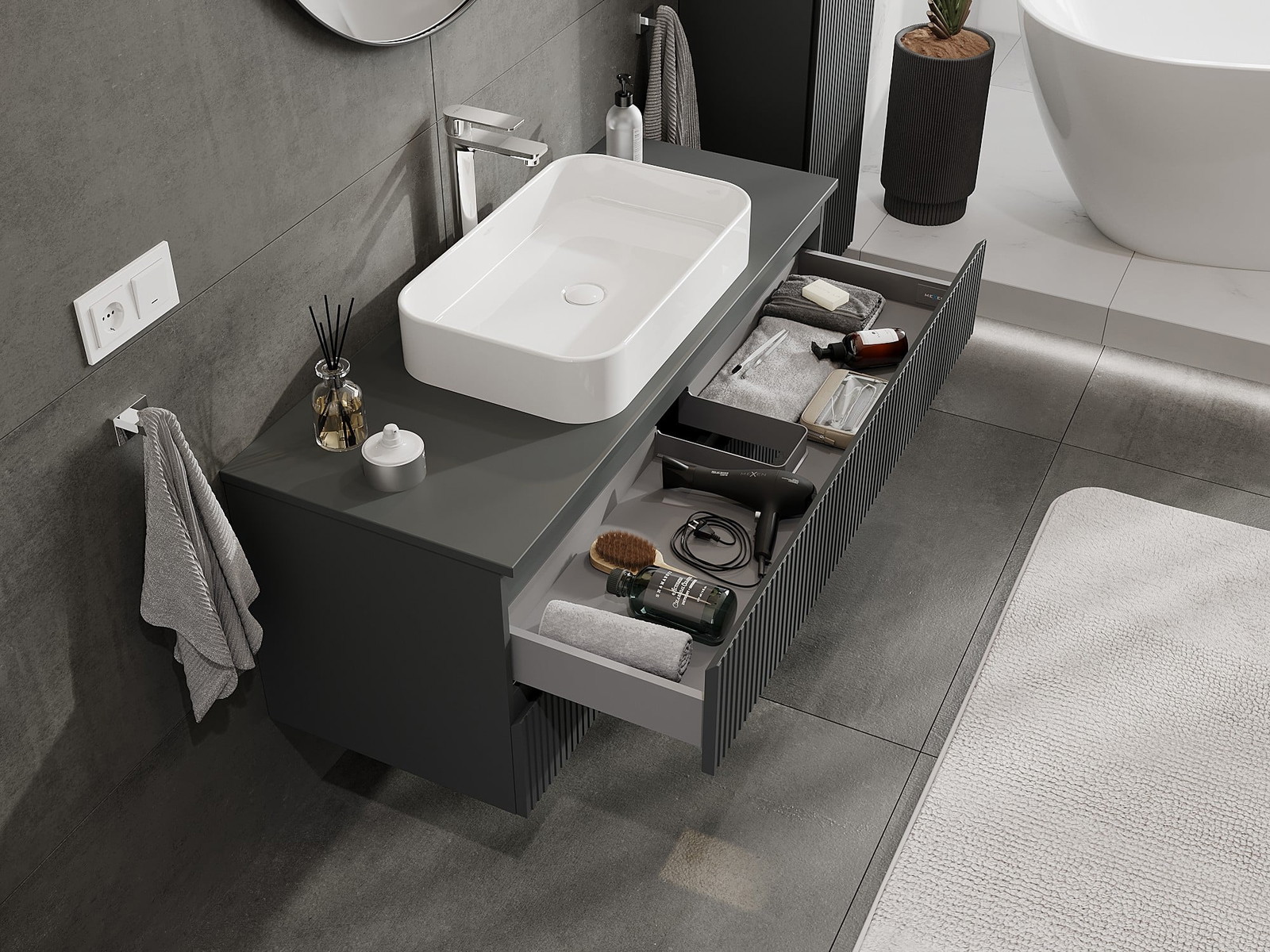 Mexen Rivel vannas istabas skapītis zem izlietnes 120 cm ar virsmu, 2 atvilktnes, rievots, grafīts matēts