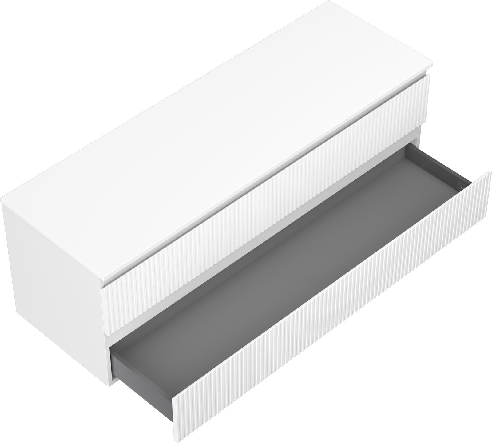 Mexen Rivel vannas istabas izlietnes skapītis 140 cm ar virsmu, 2 atvilktnes, rievots, balts matēts - 91A20-14047-2-BFFC01