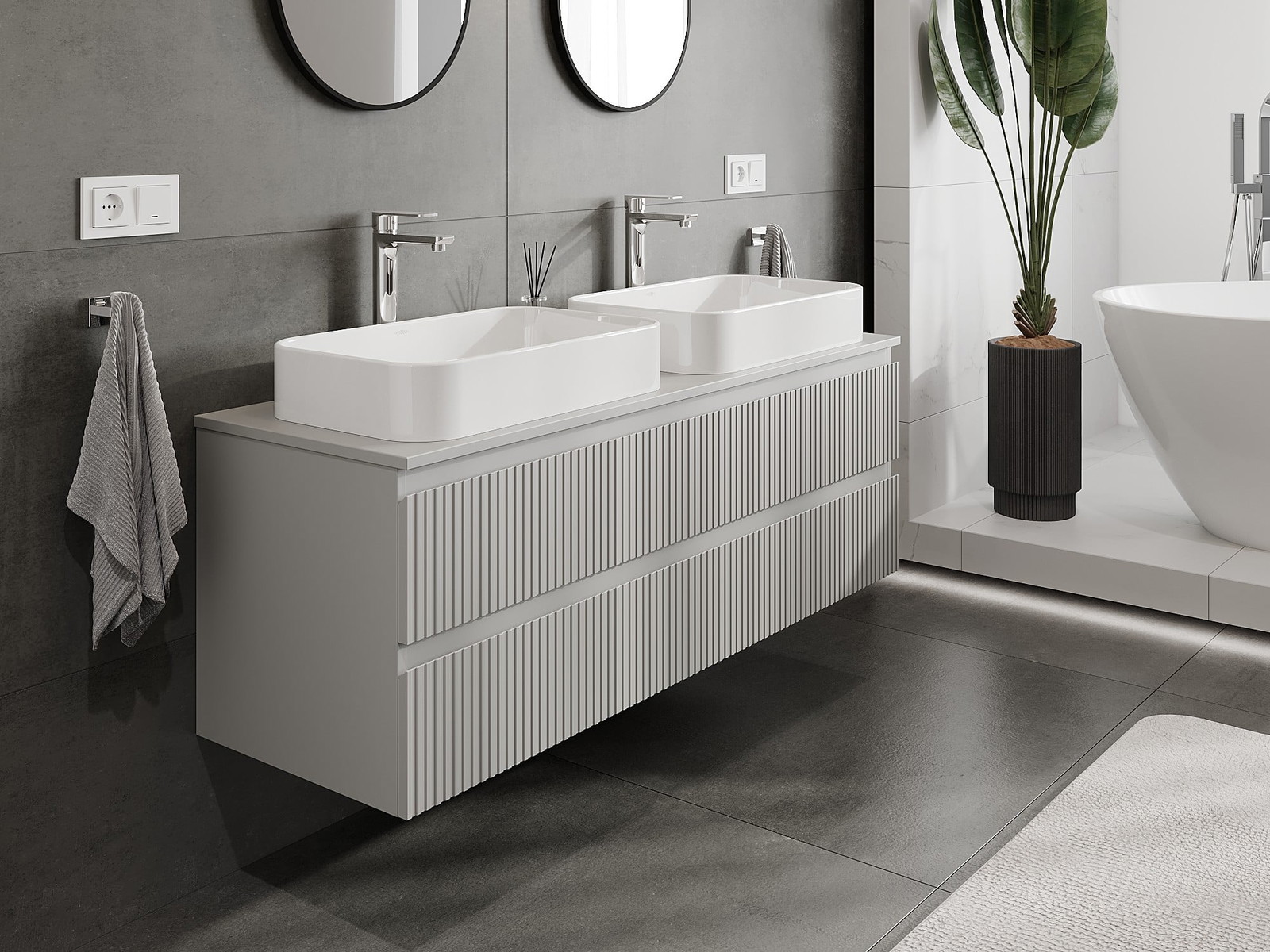 Mūsu modulārās vannas istabas mēbeles var savstarpēji kombinēt dažādās krāsu konfigurācijās, ļaujot pilnīgu personalizāciju. Var izvēlēties gan izskatu, gan atsevišķu elementu funkcijas, kas ļauj pielāgot mēbeles savām stilistiskajām un lietotāju vēlmēm.