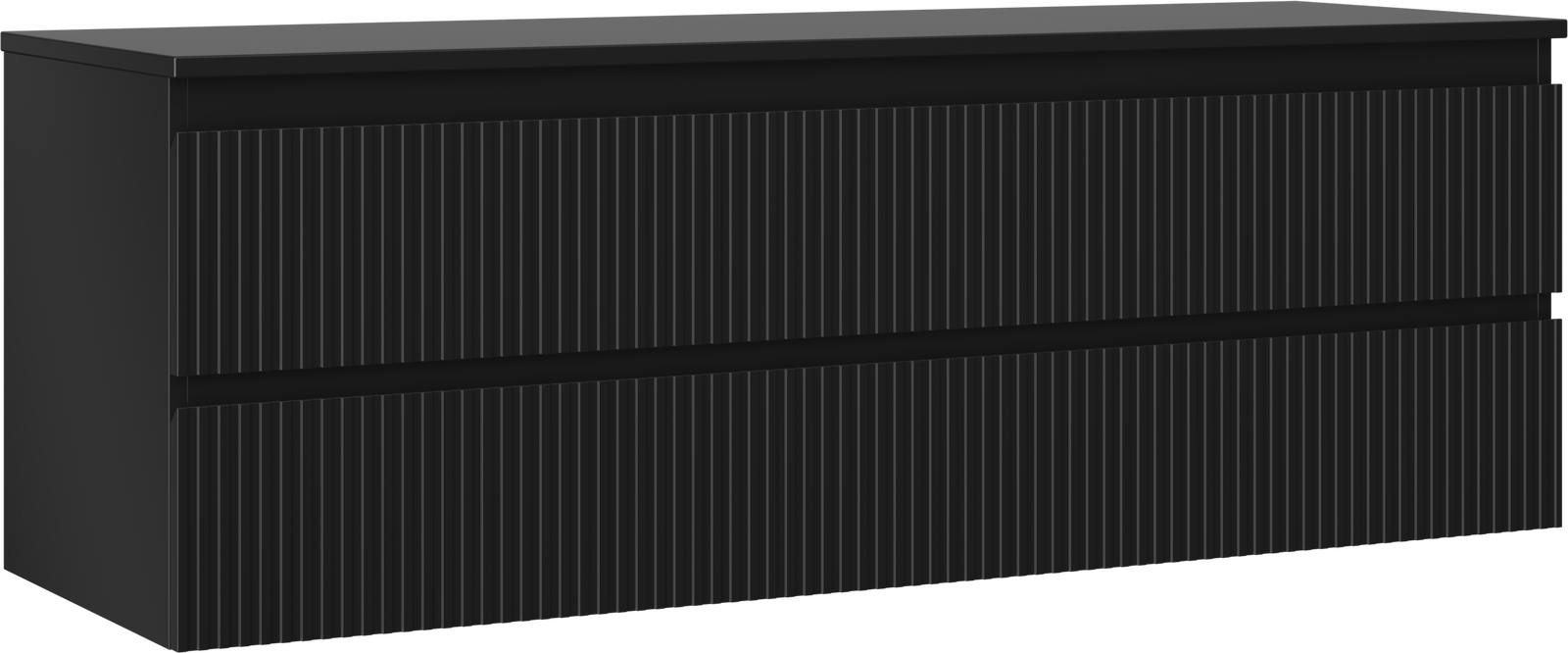 Mexen Rivel vannas istabas skapītis zem izlietnes 140 cm ar virsmu, 2 atvilktnes, rievots, melns matēts - 91A20-14047-2-BFFC71