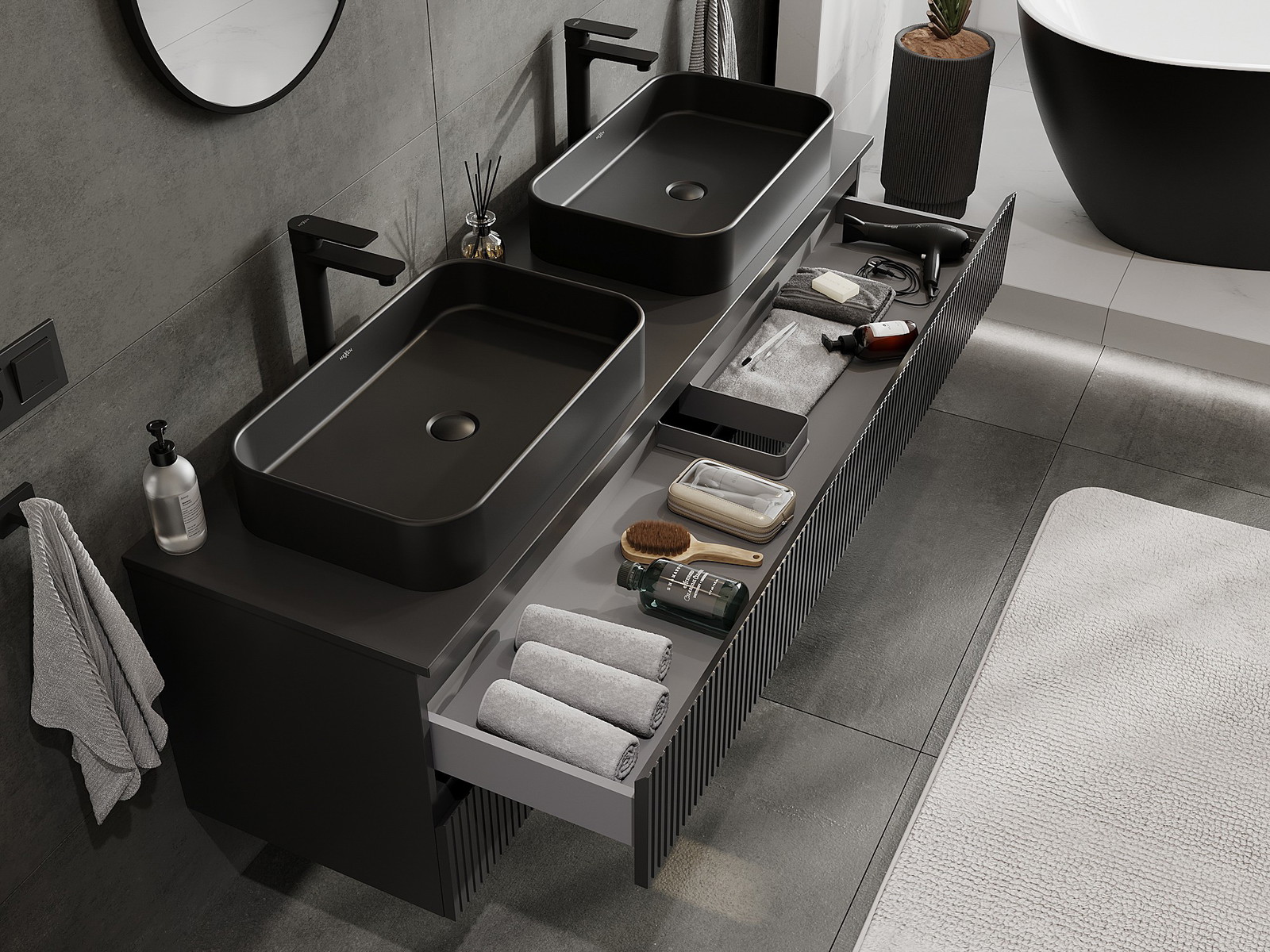 Mūsu modulārās vannas istabas mēbeles var savstarpēji kombinēt dažādās krāsu konfigurācijās, ļaujot pilnīgu personalizāciju. Var izvēlēties gan izskatu, gan atsevišķu elementu funkcijas, kas ļauj pielāgot mēbeles savām stilistiskajām un lietotāju vēlmēm.