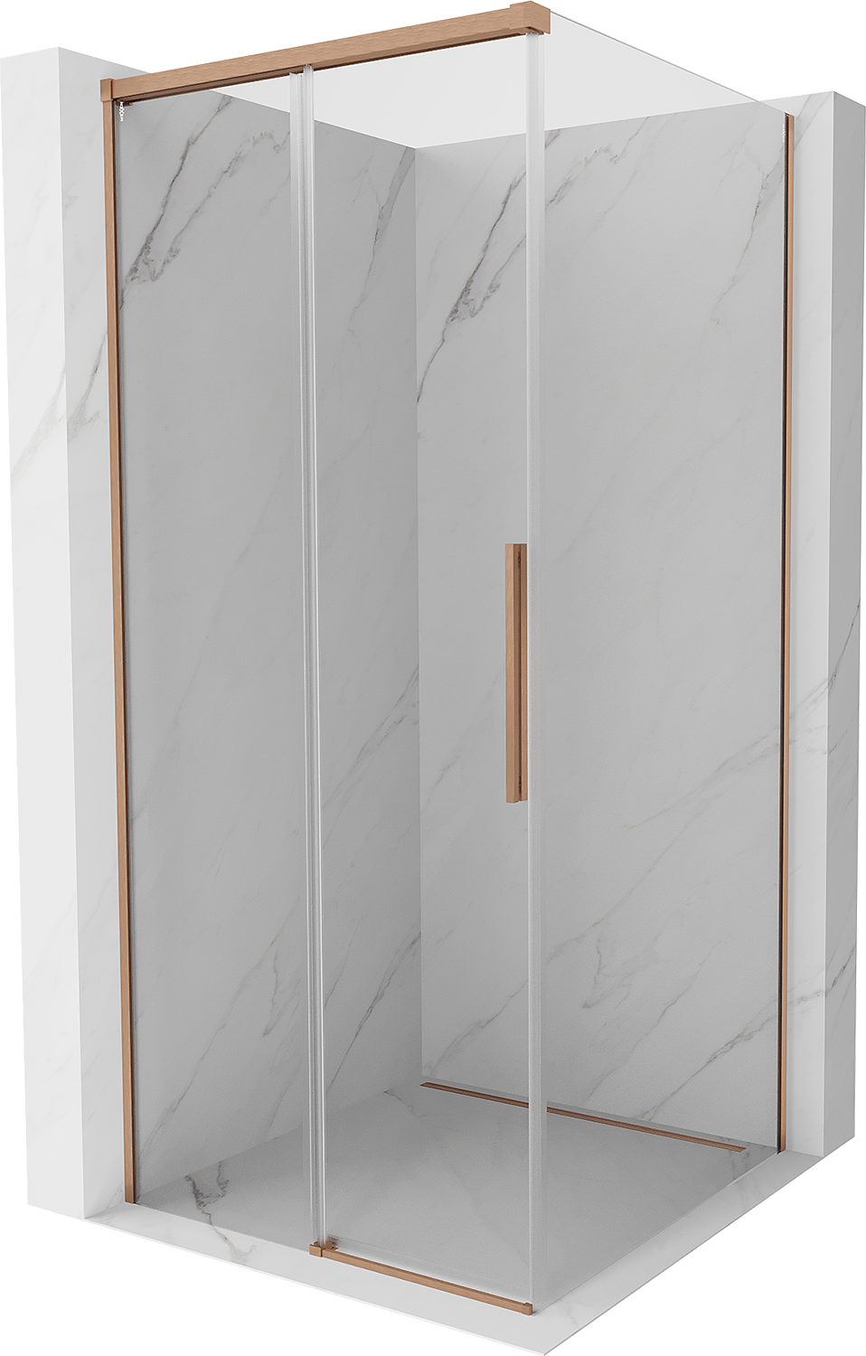 Mexen Rox bīdāmā stikla dušas kabīne 95 x 95 cm, caurspīdīga, matēta vara - 8C2-095-095-65-00