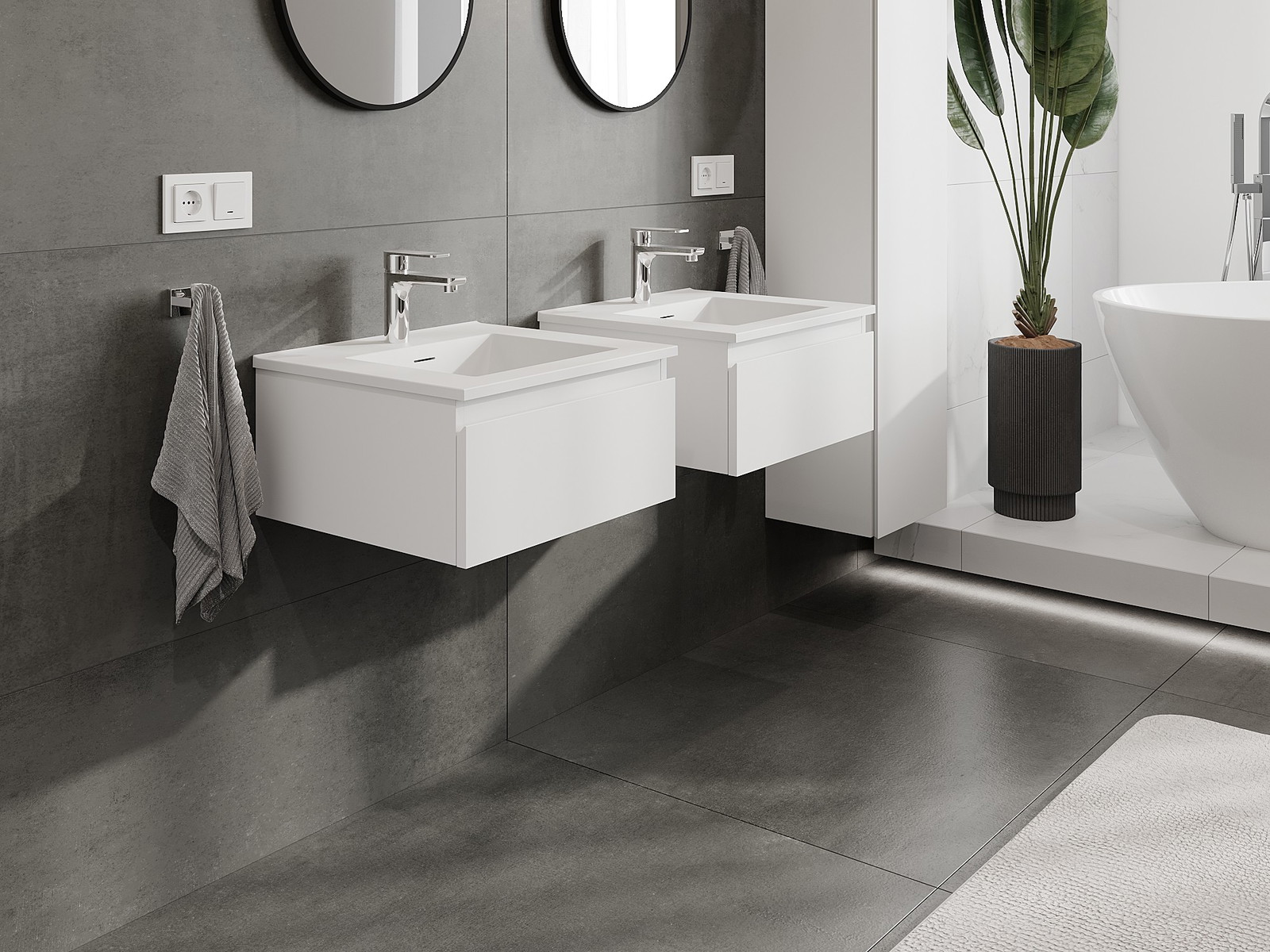 Mūsu modulārās vannas istabas mēbeles var savstarpēji kombinēt dažādās krāsu konfigurācijās, ļaujot pilnīgu personalizāciju. Var izvēlēties gan izskatu, gan atsevišķu elementu funkcijas, kas ļauj pielāgot mēbeles savām stilistiskajām un lietotāju vēlmēm.