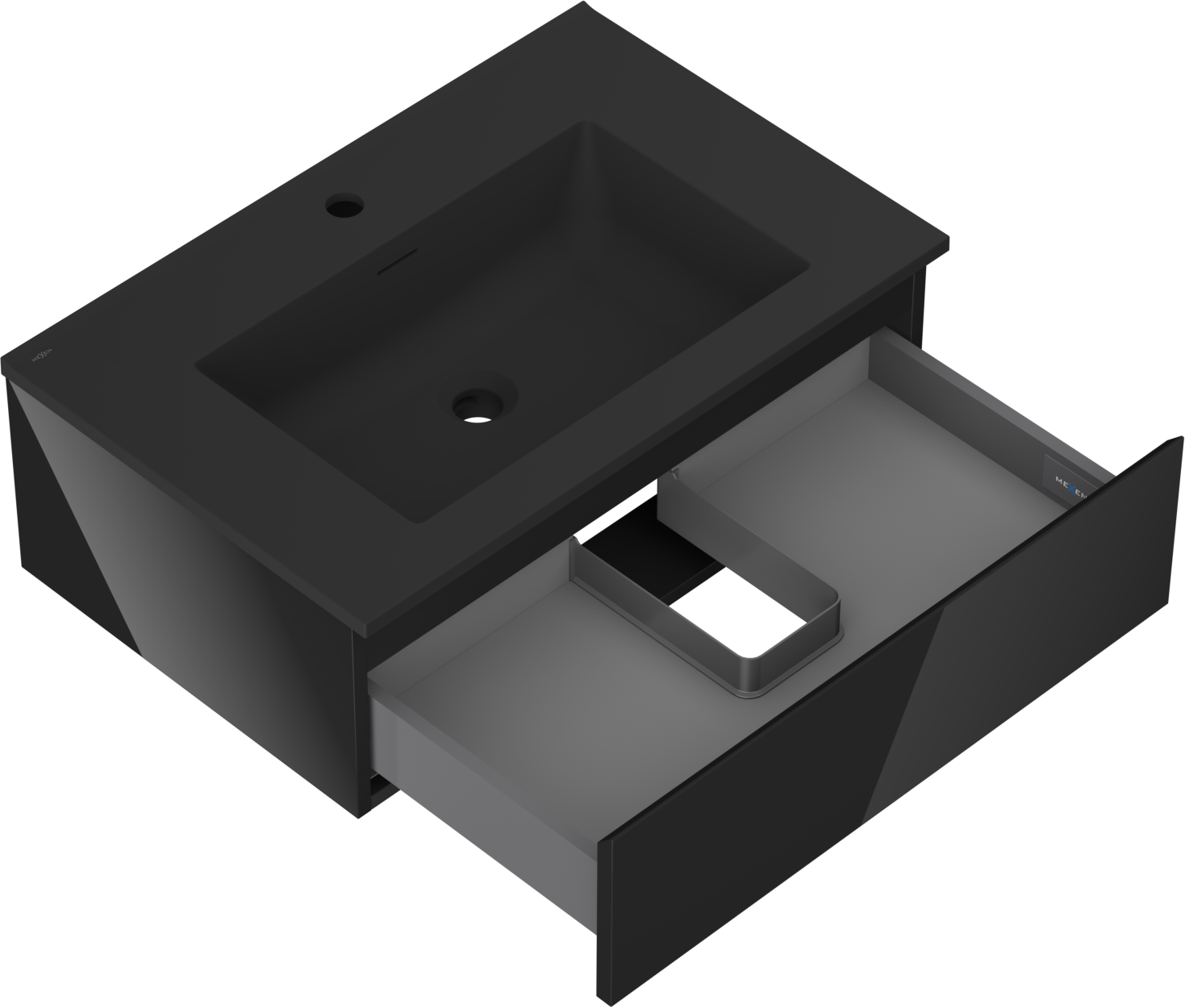 Mexen Orio vannas istabas skapis 70 cm ar izlietni Otis, 1 atvilktne, melna spīdīga/melna matēta - 91A10-07023-1-BF70-W18M71