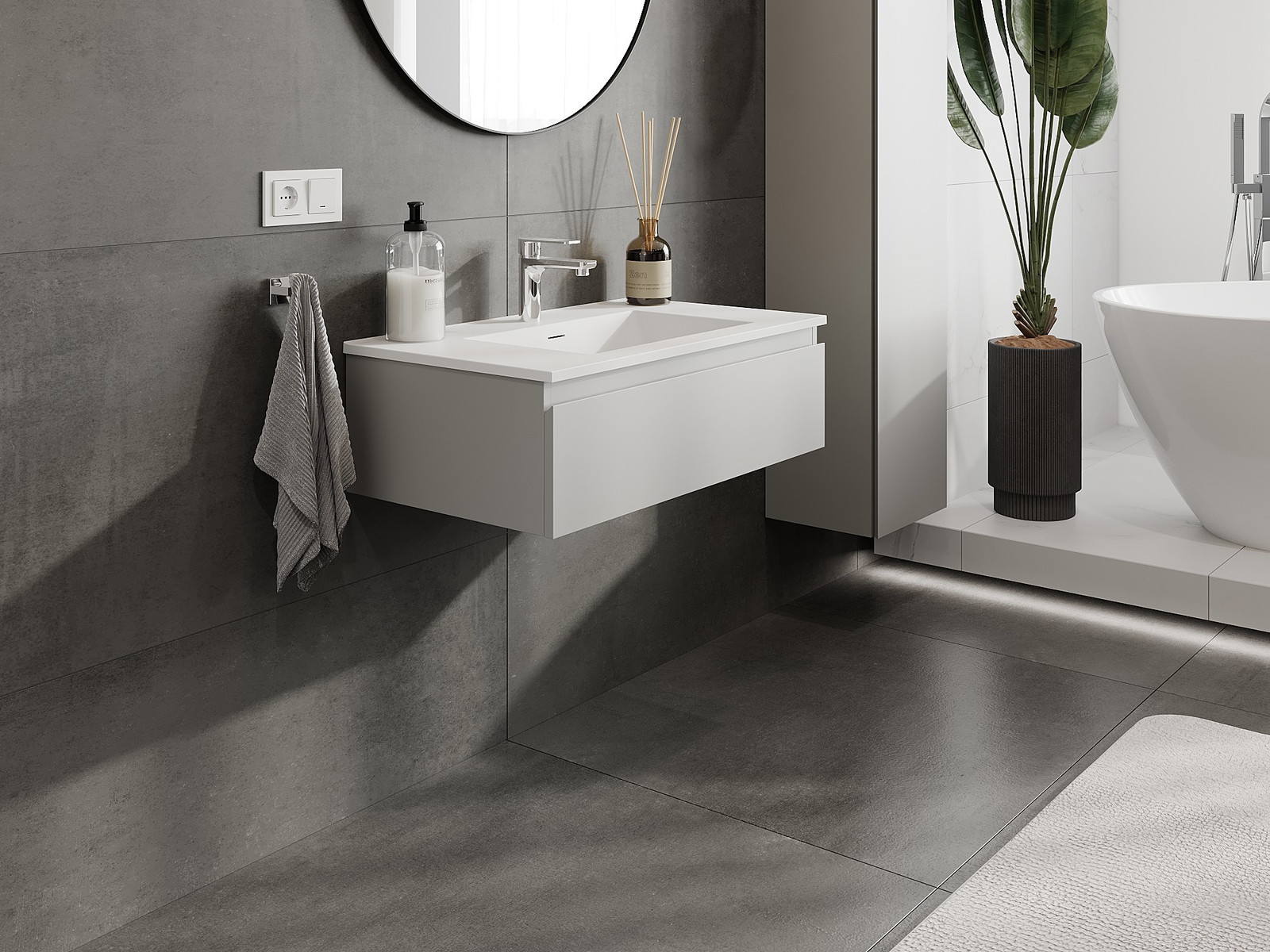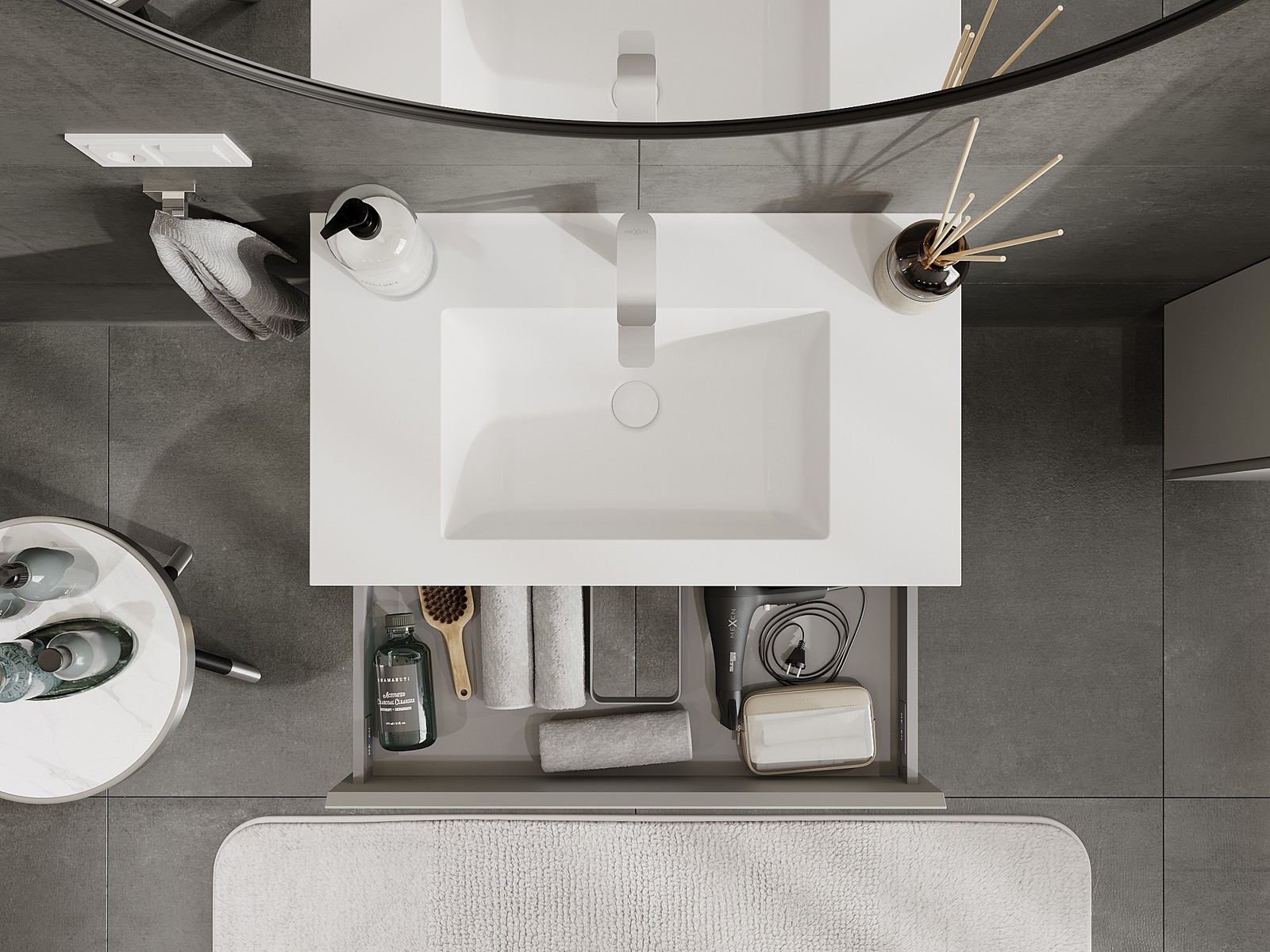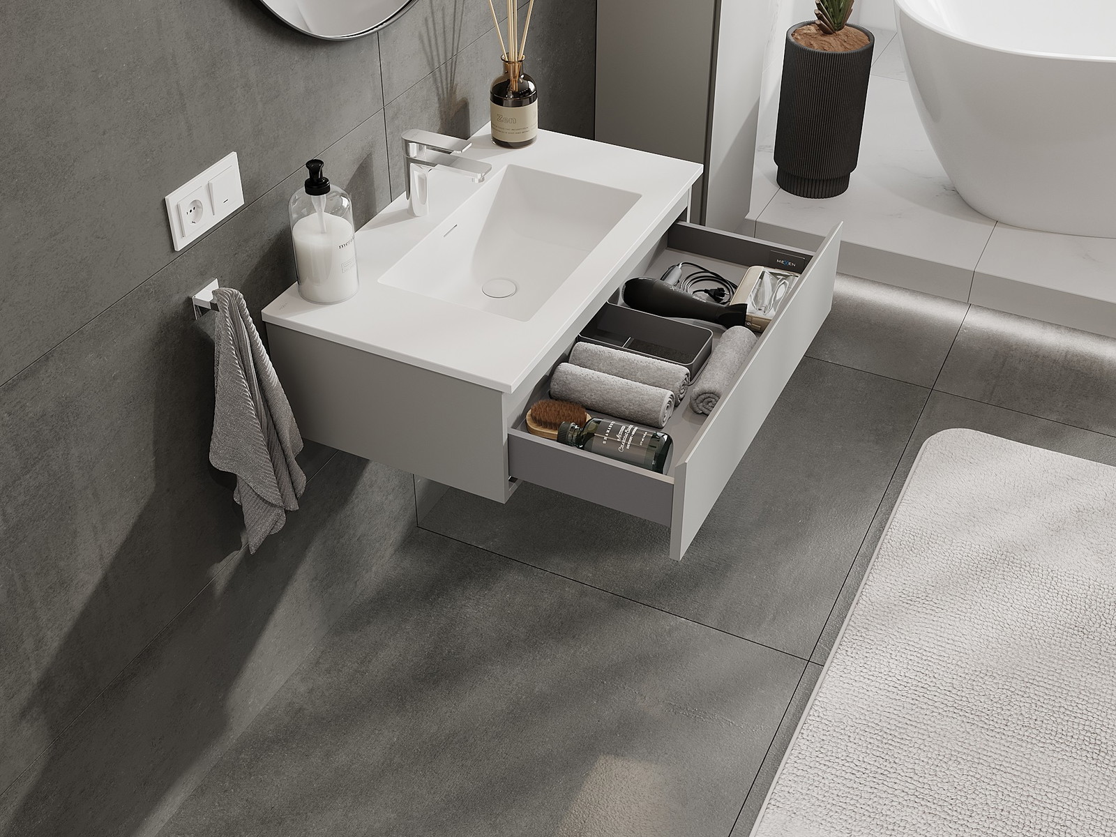 Mexen Orio vannas istabas skapis 80 cm ar izlietni Otis, 1 atvilktne, pelēks matēts/balts matēts - 91A10-08023-1-BF62-W18M01