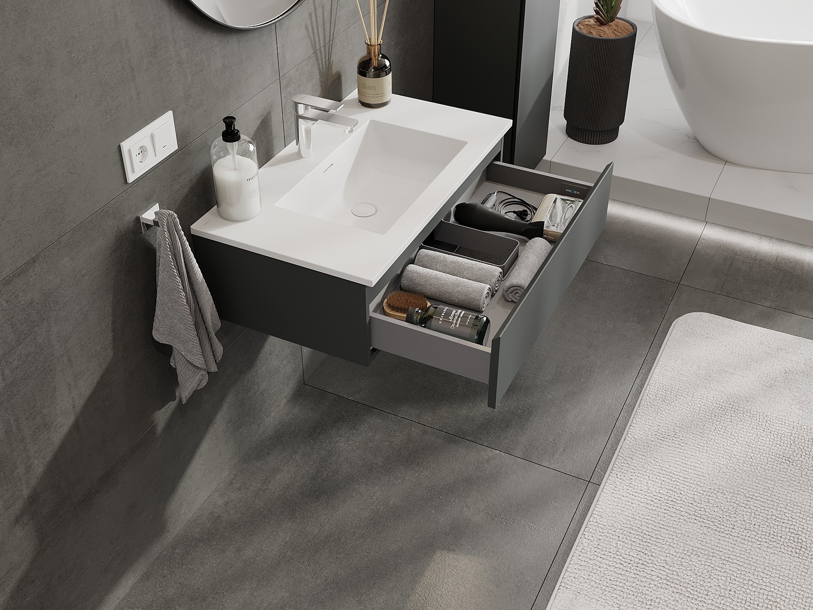 Mexen Orio 80 cm vannas istabas skapis ar izlietni Otis, 1 atvilktne, grafīta matēta/balta matēta - 91A10-08023-1-BF66-W18M01