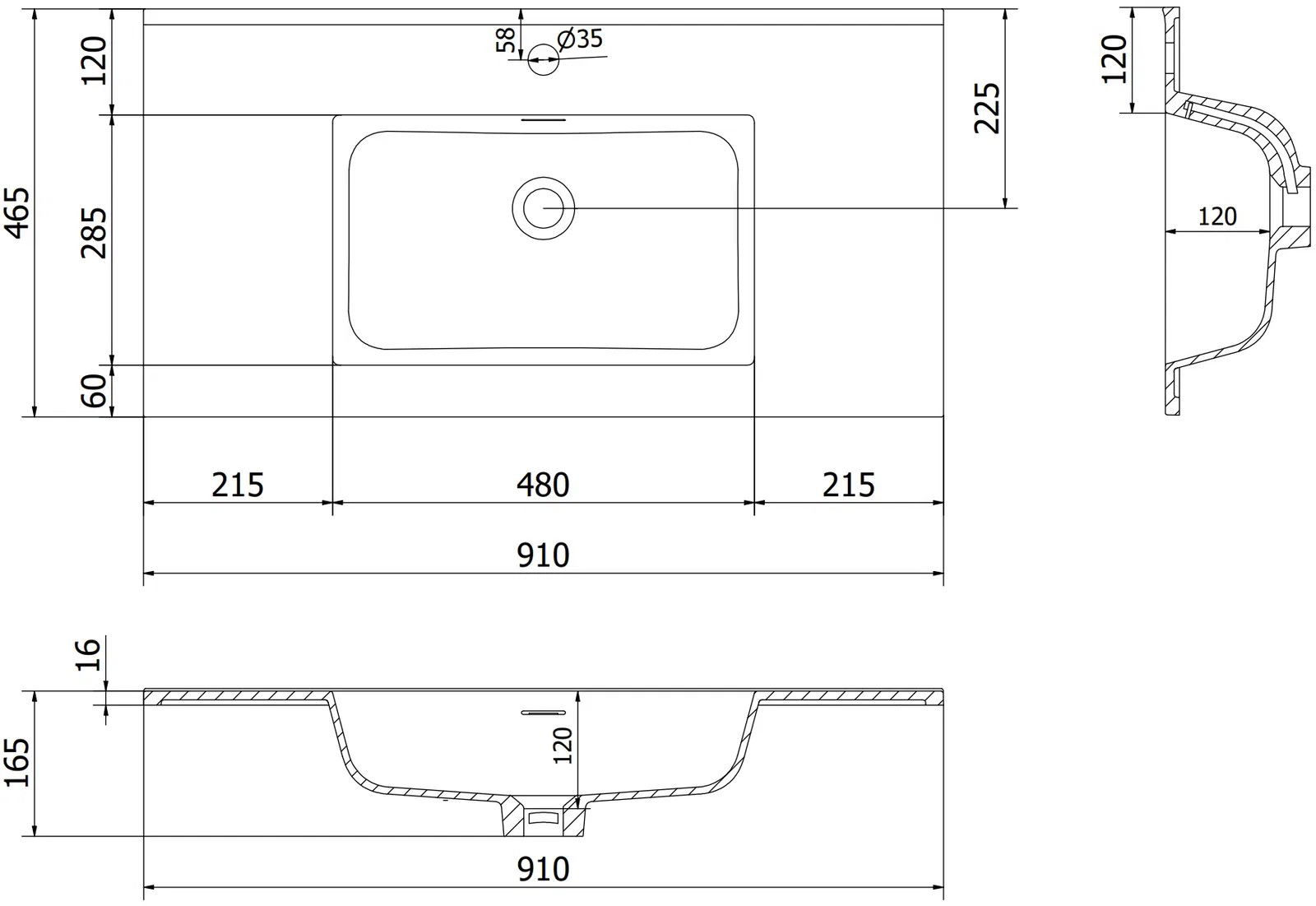 Izlietnes izmēri: