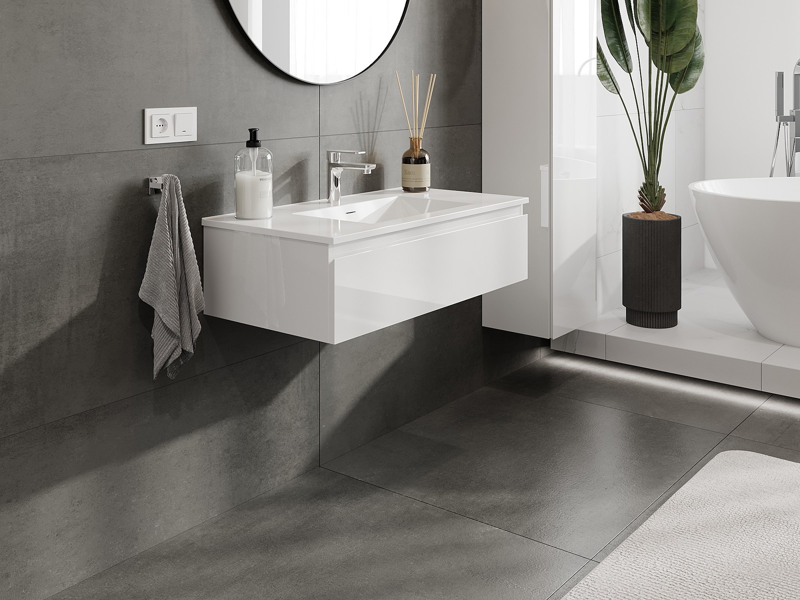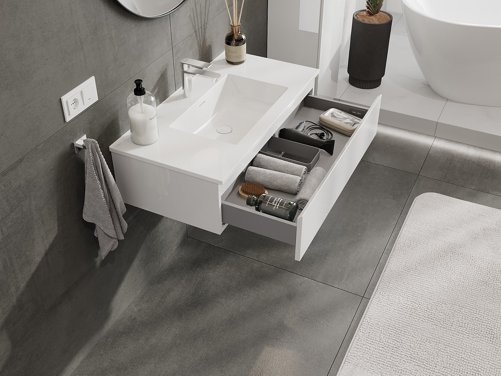 Mexen Orio 90 cm vannas istabas skapis ar izlietni Otis, 1 atvilktne, balts spīdums - 91A10-09023-1-BF00-W18M00