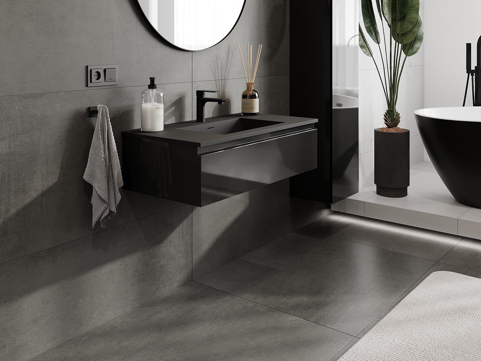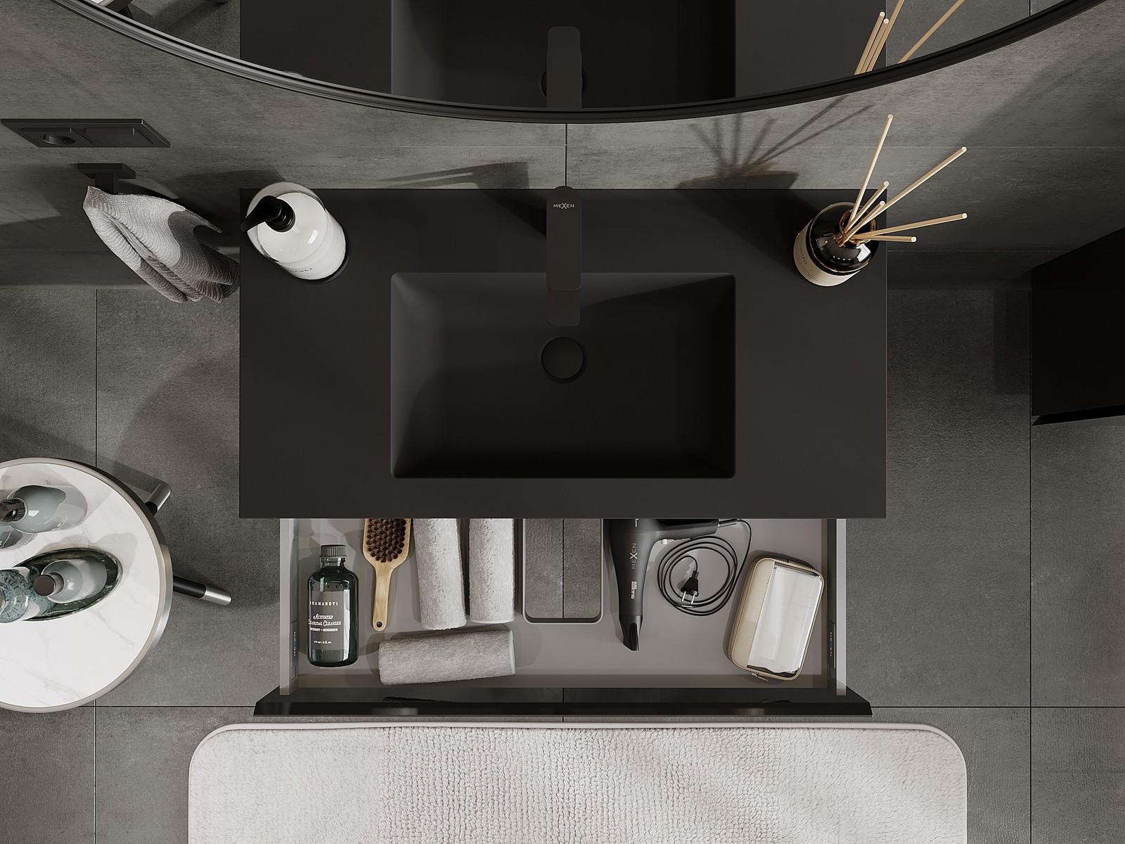 Mexen Orio 90 cm vannas istabas skapis ar izlietni Otis, 1 atvilktne, melns spīdums/melns matēts - 91A10-09023-1-BF70-W18M71