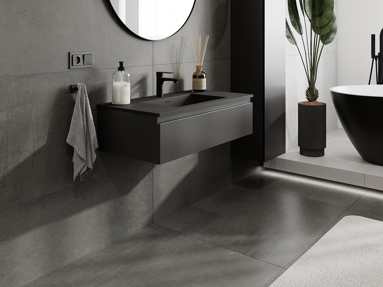 Mexen Orio vannas istabas skapis 90 cm ar izlietni Otis, 1 atvilktne, melns matēts - 91A10-09023-1-BF71-W18M71