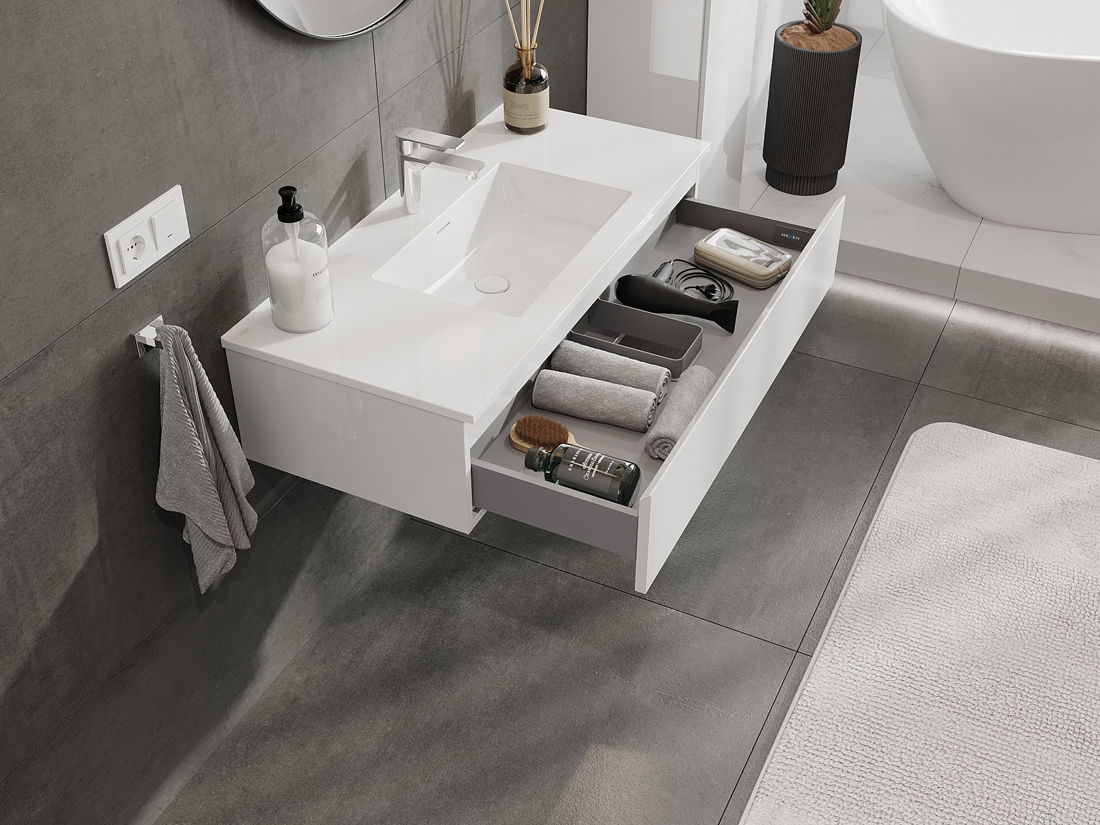Mexen Orio 100 cm vannas istabas skapītis ar izlietni Otis, 1 atvilktne, balts spīdums - 91A10-10023-1-BF00-W18M00