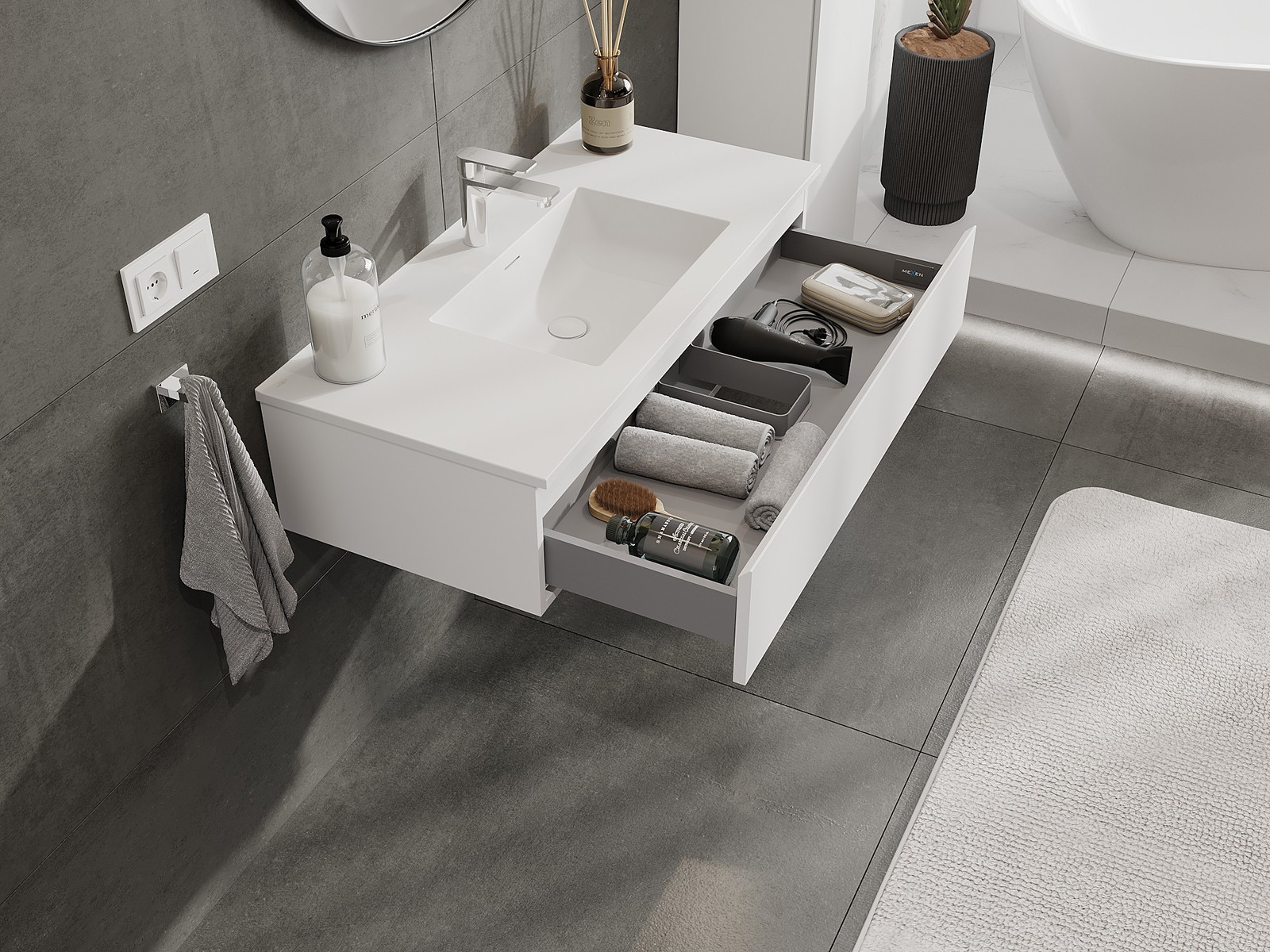 Mexen Orio vannasistabas skapis 100 cm ar izlietni Otis, 1 atvilktne, balts mats - 91A10-10023-1-BF01-W18M01