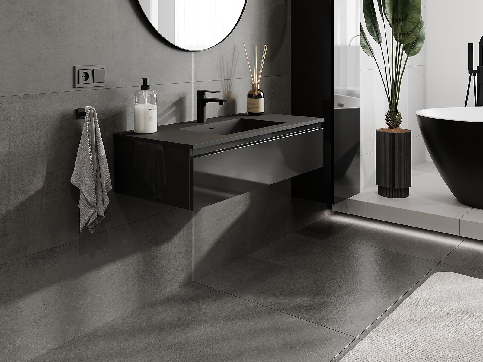 Mexen Orio vannas istabas skapis 100 cm ar izlietni Otis, 1 atvilktne, melns spīdums/melns matēts - 91A10-10023-1-BF70-W18M71