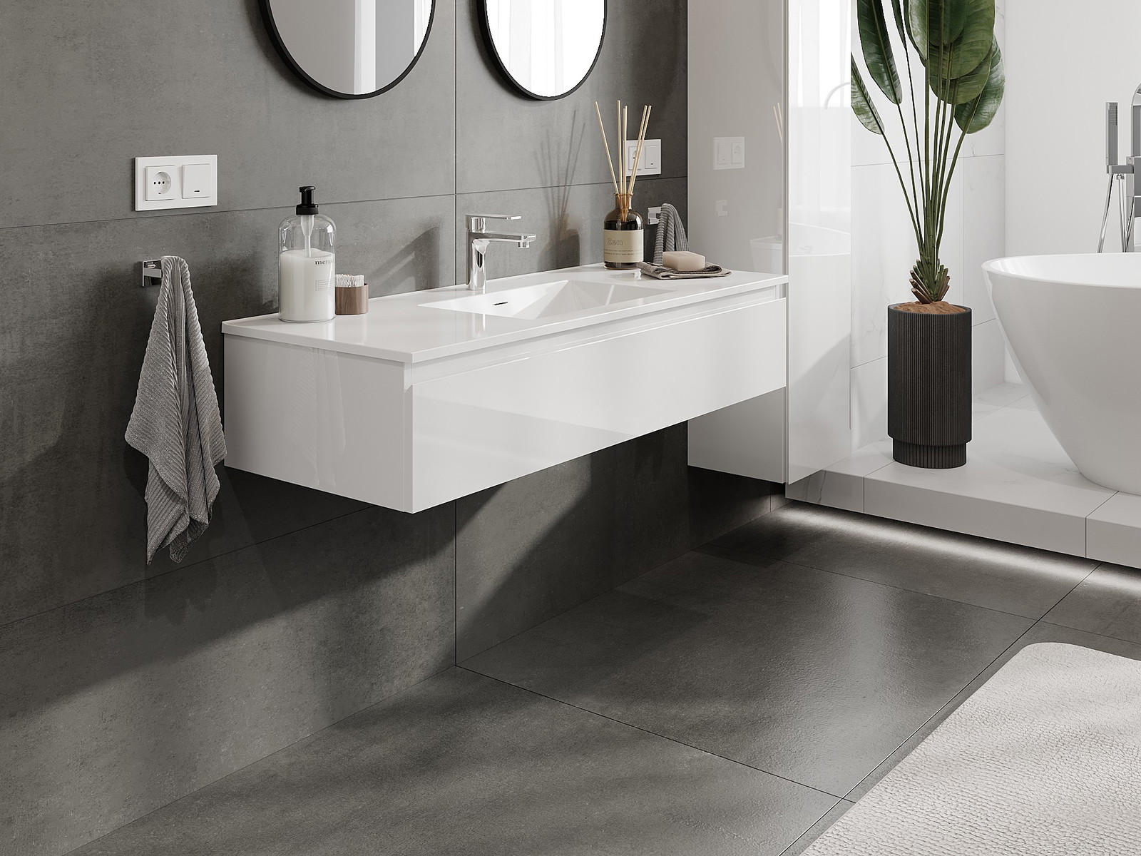 Mexen Orio vannas istabas skapis 120 cm ar izlietni Otis, 1 atvilktne, balts spīdīgs - 91A10-12023-1-BF00-W18M00