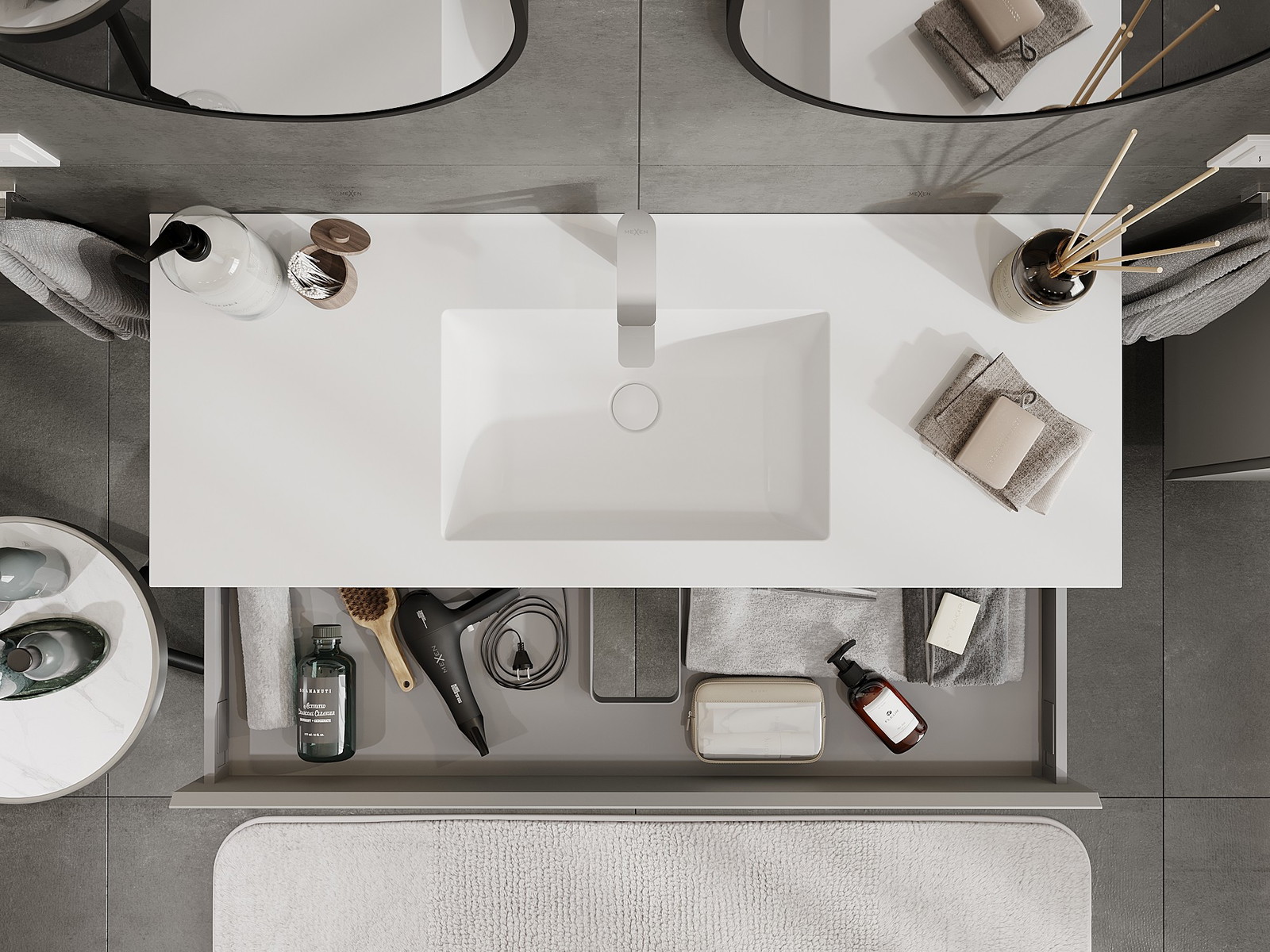 Mexen Orio vannas istabas skapītis 120 cm ar izlietni Otis, 1 atvilktne, pelēks matēts/balts matēts - 91A10-12023-1-BF62-W18M01