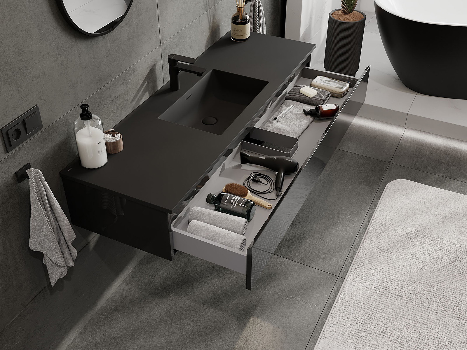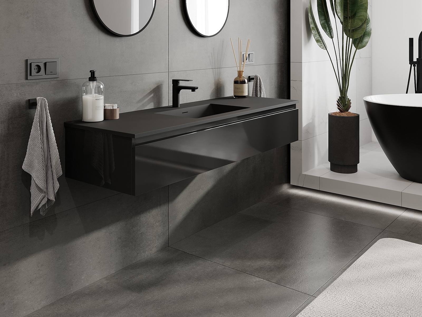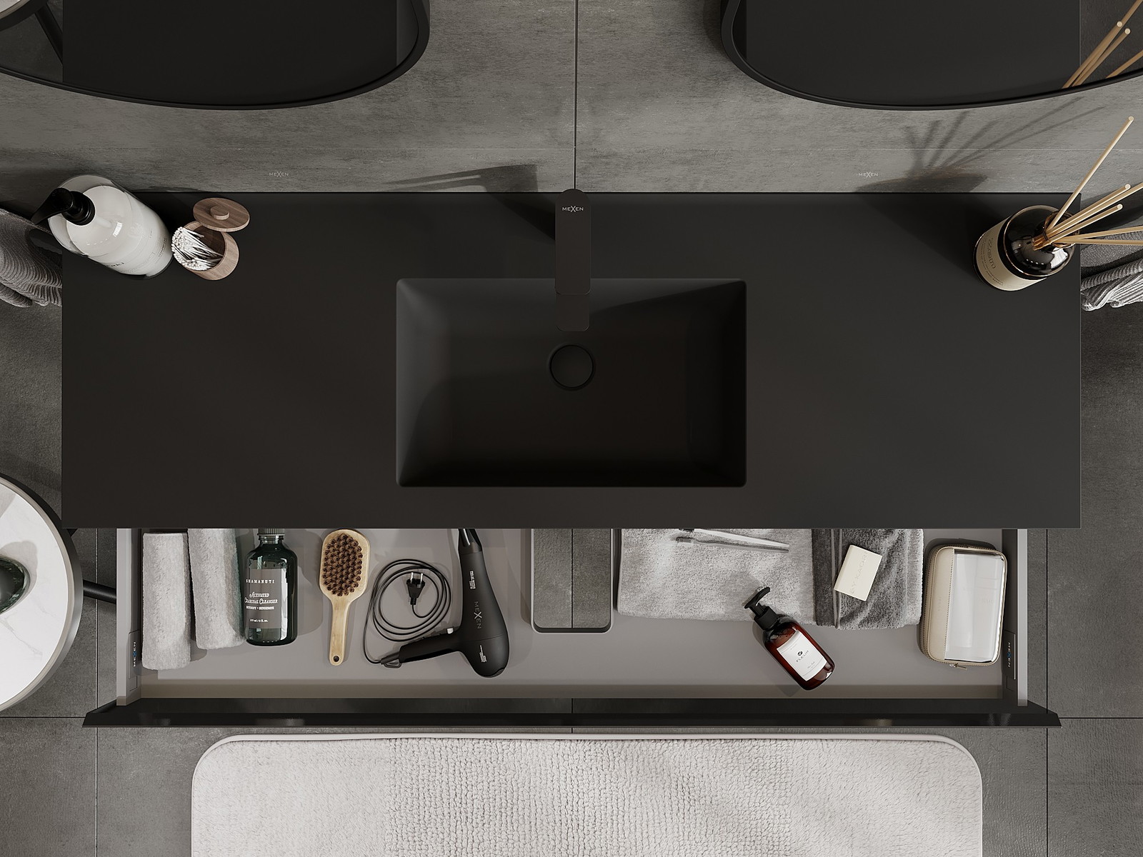 Mexen Orio vannas istabas skapis 140 cm ar izlietni Otis, 1 atvilktne, melns spīdīgs/melns matēts - 91A10-14023-1-BF70-W18M71