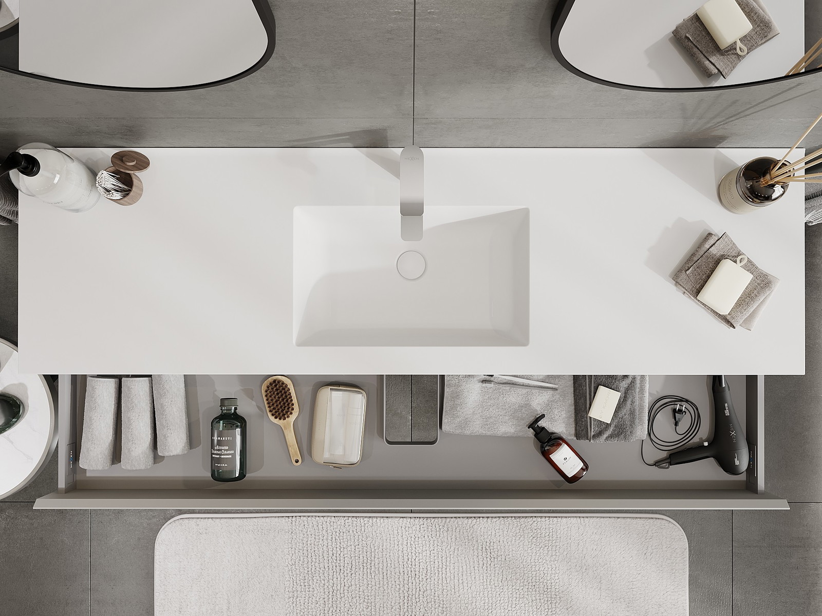 Mexen Orio 160 cm vannas istabas skapītis ar izlietni Otis, 1 atvilktne, pelēks matēts/balts matēts - 91A10-16023-1-BF62-W18M01