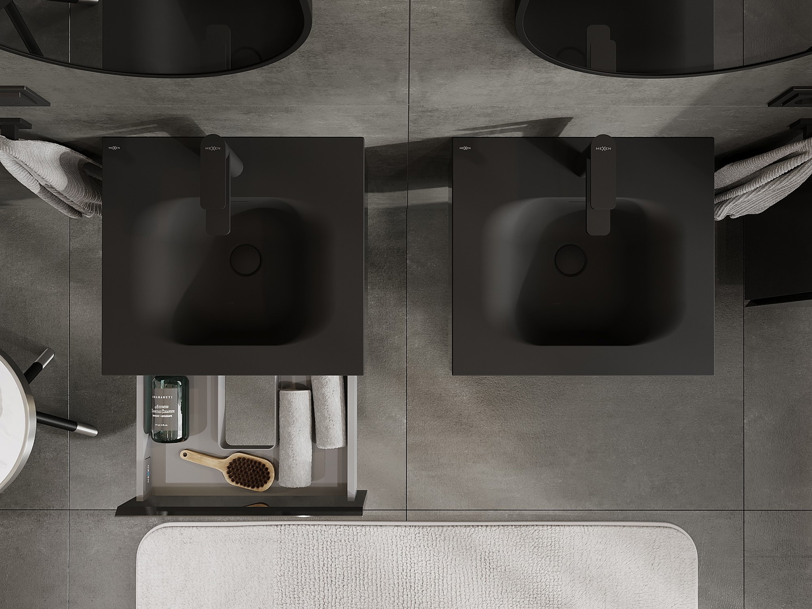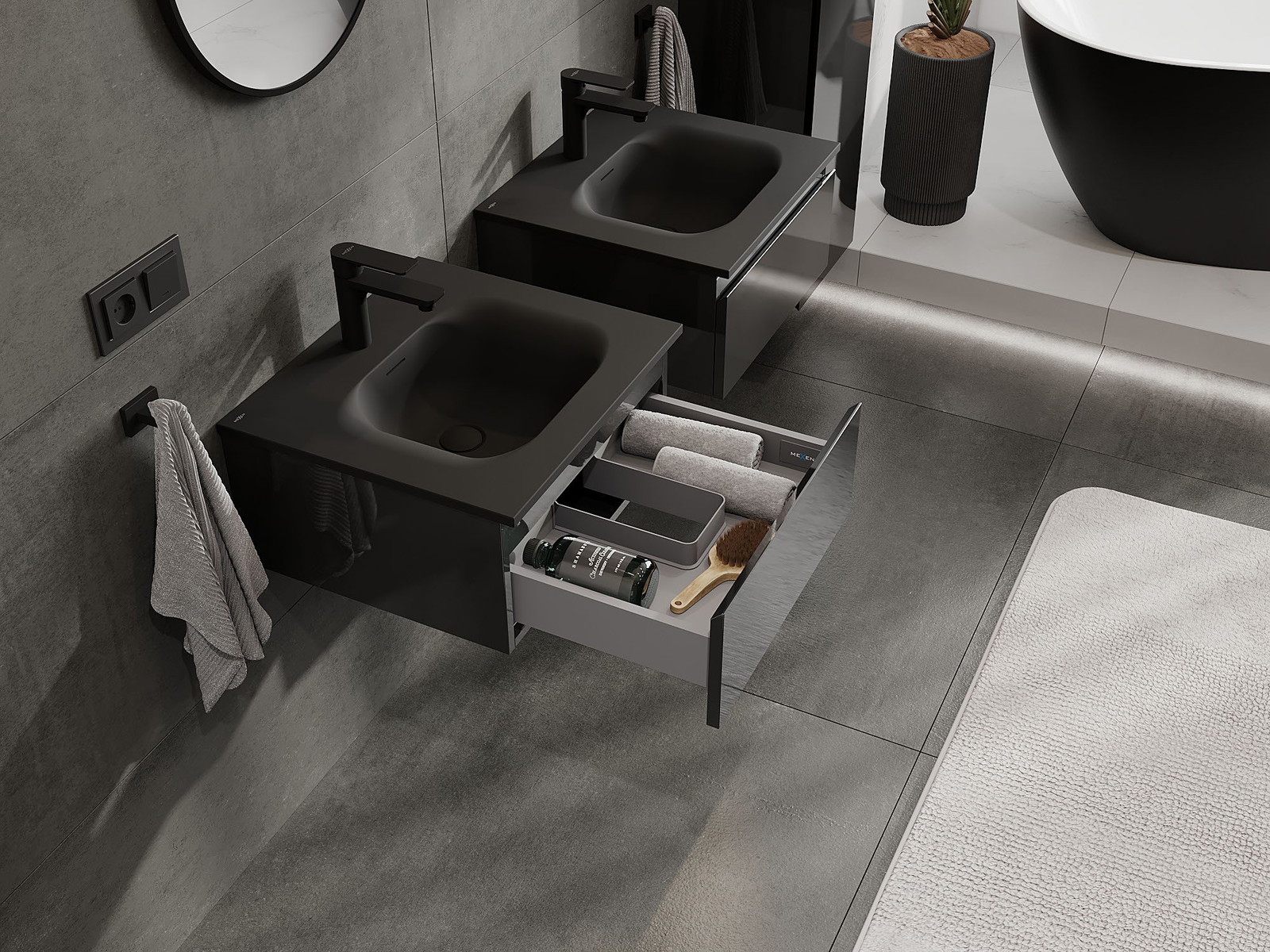Mexen Orio 50 cm vannas istabas skapītis ar izlietni Vela, 1 atvilktne, melns spīdums/melns matējums - 91A10-05023-1-BF70-W23M71