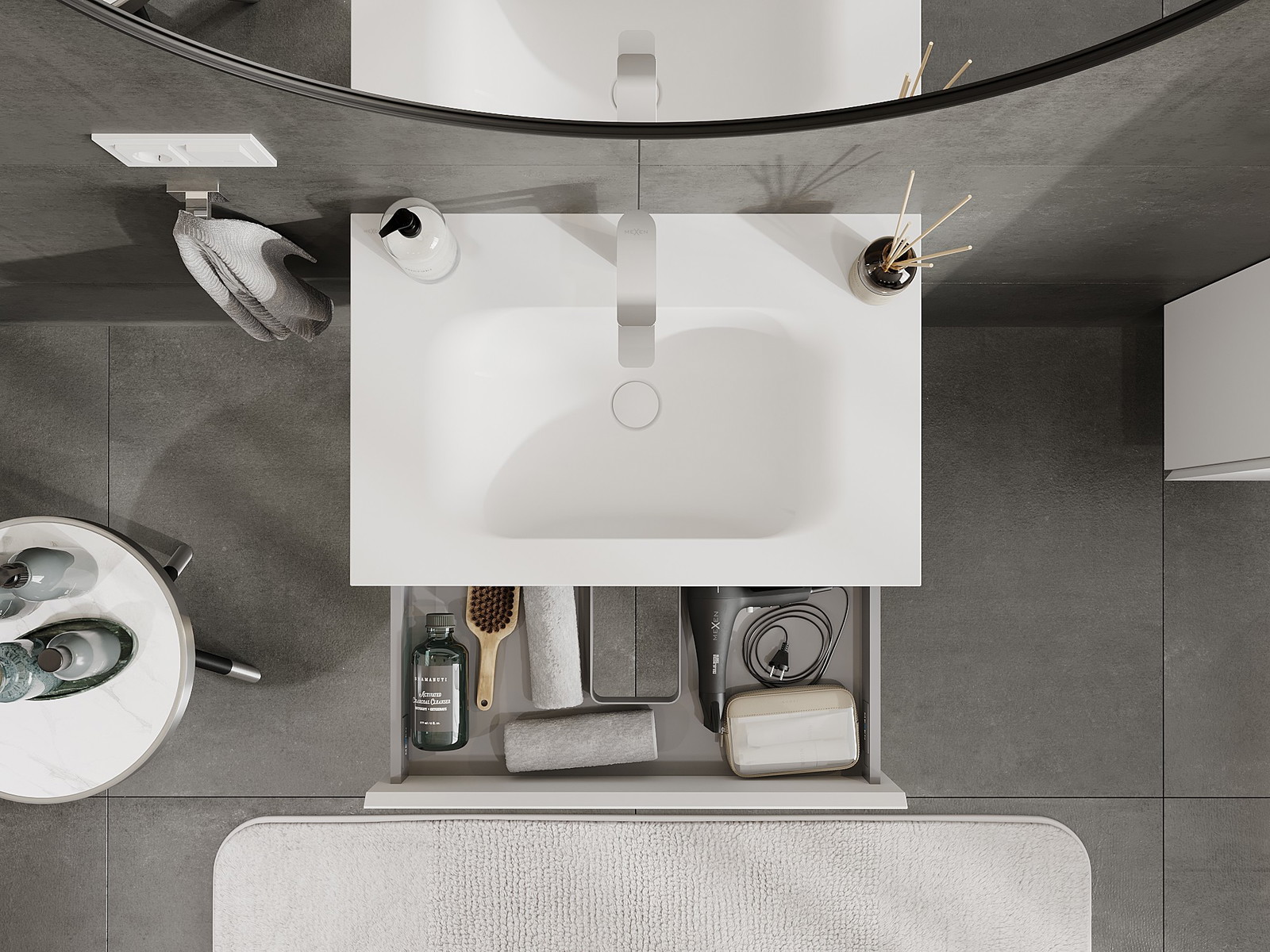 Mūsu modulārās vannas istabas mēbeles var savstarpēji kombinēt dažādās krāsu konfigurācijās, ļaujot pilnīgu personalizāciju. Var izvēlēties gan izskatu, gan atsevišķu elementu funkcijas, kas ļauj pielāgot mēbeles savām stilistiskajām un lietotāju vēlmēm.