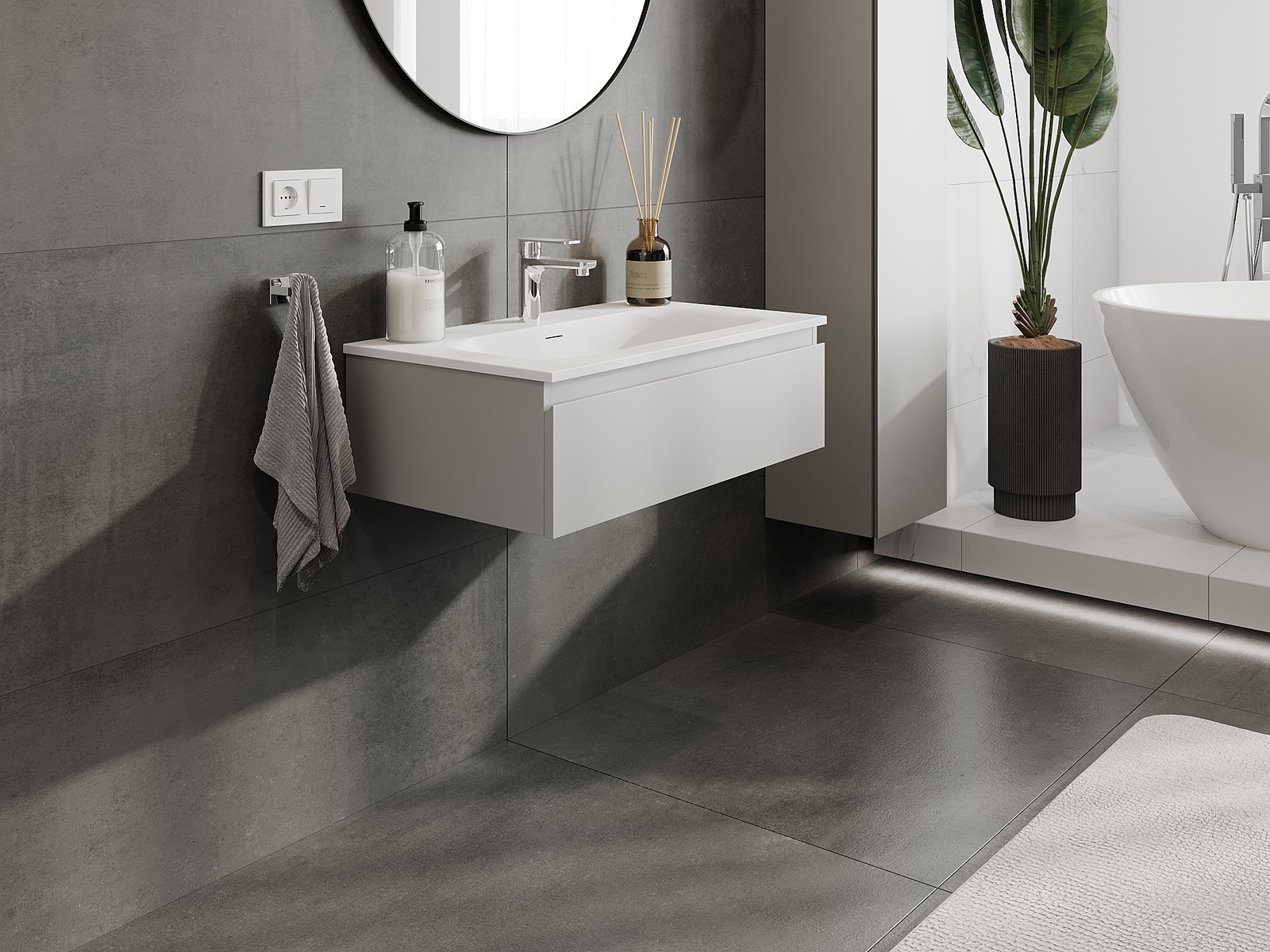 Mexen Orio vannas istabas skapītis 80 cm ar izlietni Vela, 1 atvilktne, pelēks mats/balts mats - 91A10-08023-1-BF62-W23M01