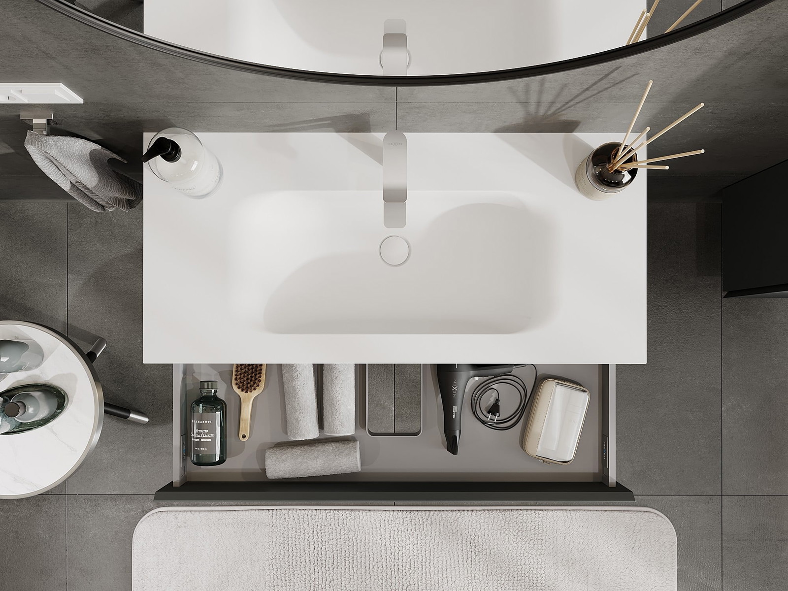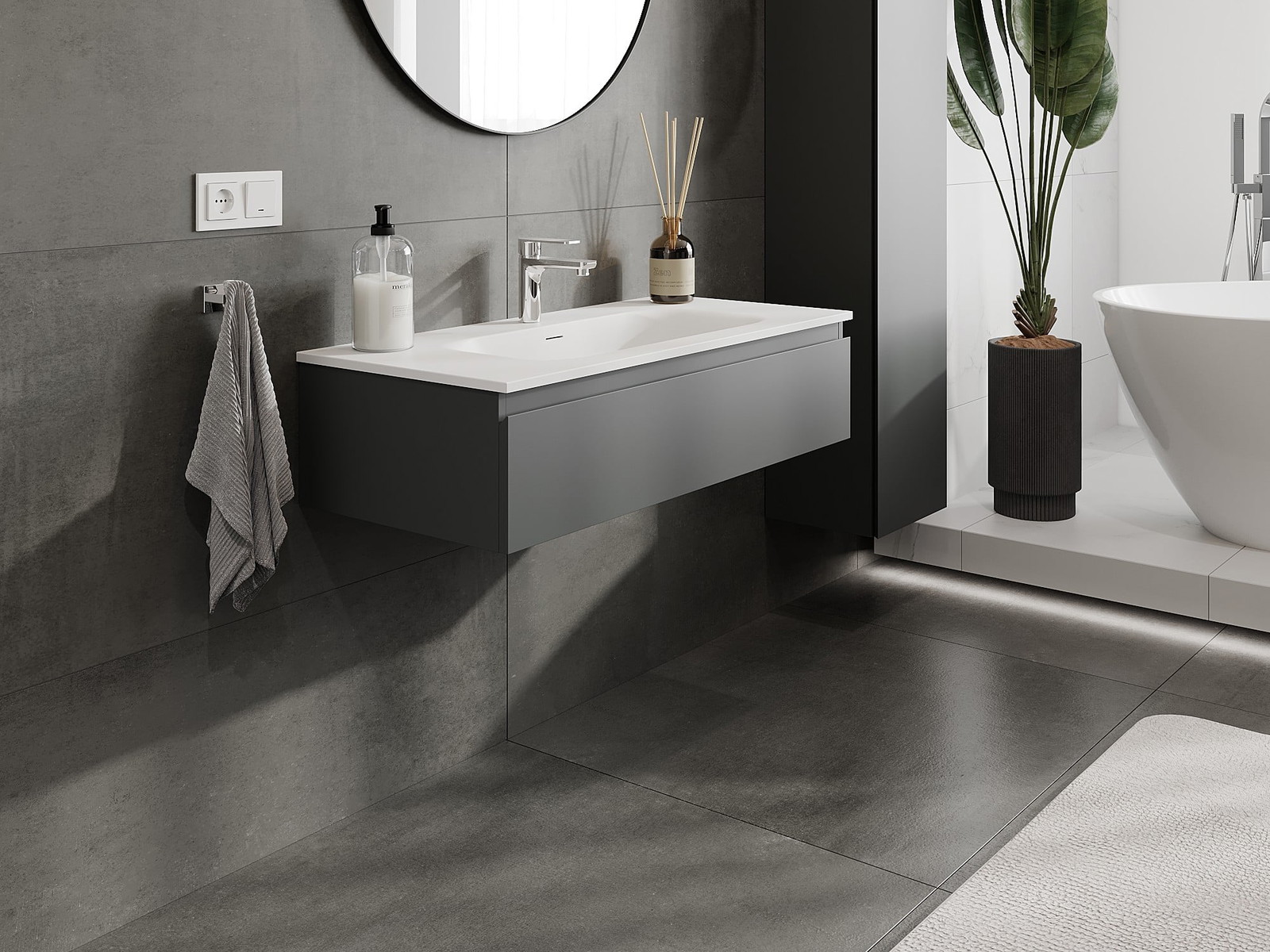 Mexen Orio 100 cm vannas istabas skapis ar izlietni Vela, 1 atvilktne, matēts grafīts/baltais mats - 91A10-10023-1-BF66-W23M01