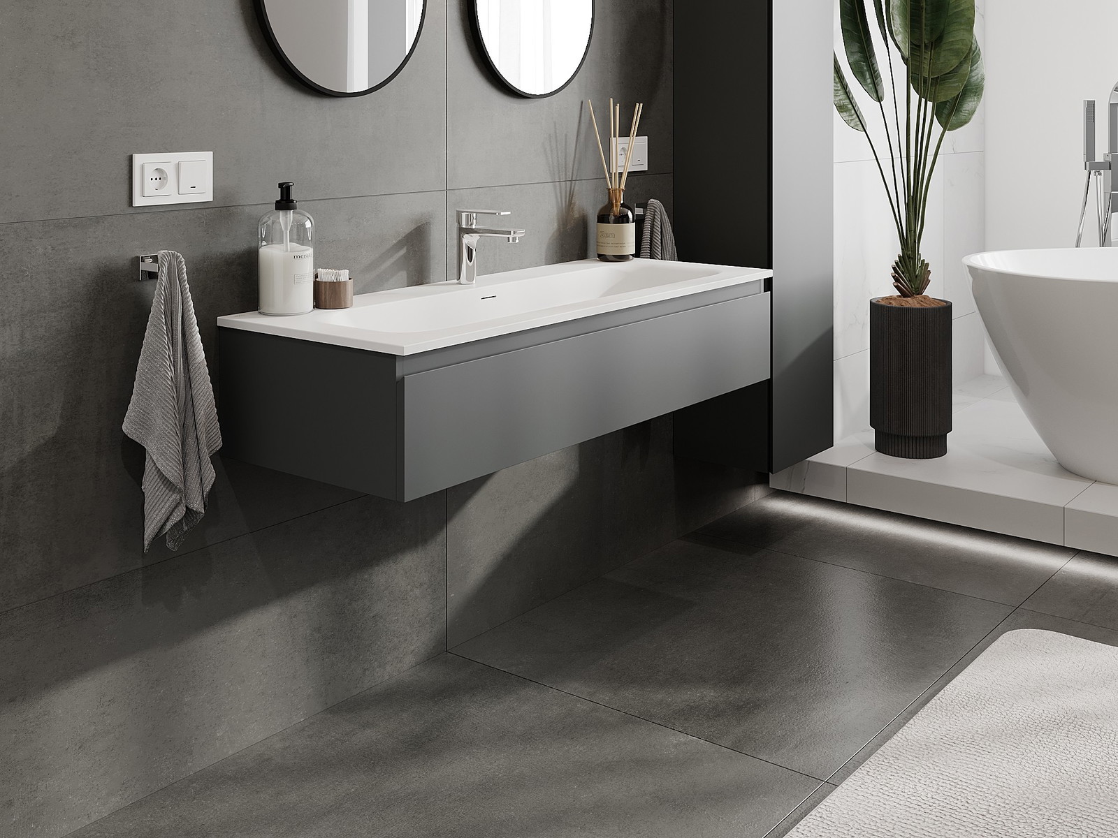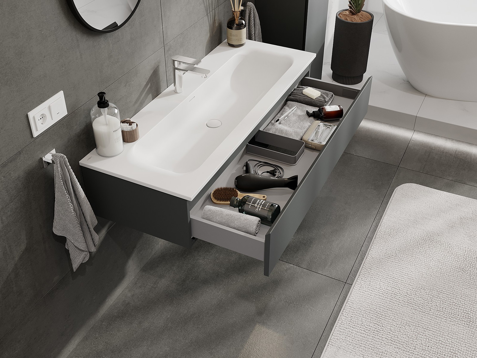 Mexen Orio vannas istabas skapis 120 cm ar izlietni Vela, 1 atvilktne, grafīts matēts/balta matēta - 91A10-12023-1-BF66-W23M01