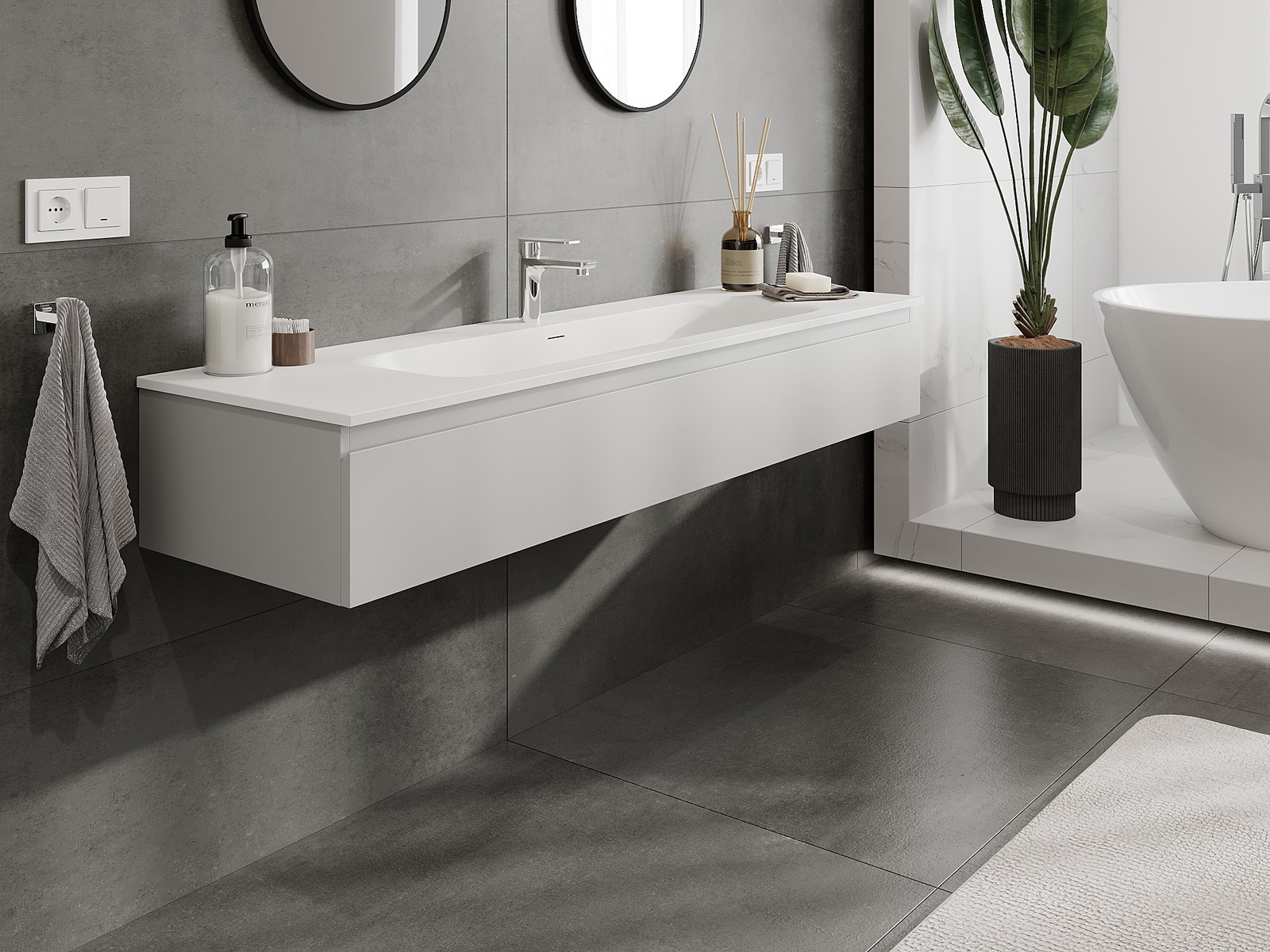 Mexen Orio 160 cm vannas istabas skapītis ar izlietni Vela, 1 atvilktne, pelēks matēts/balts matēts - 91A10-16023-1-BF62-W23M01
